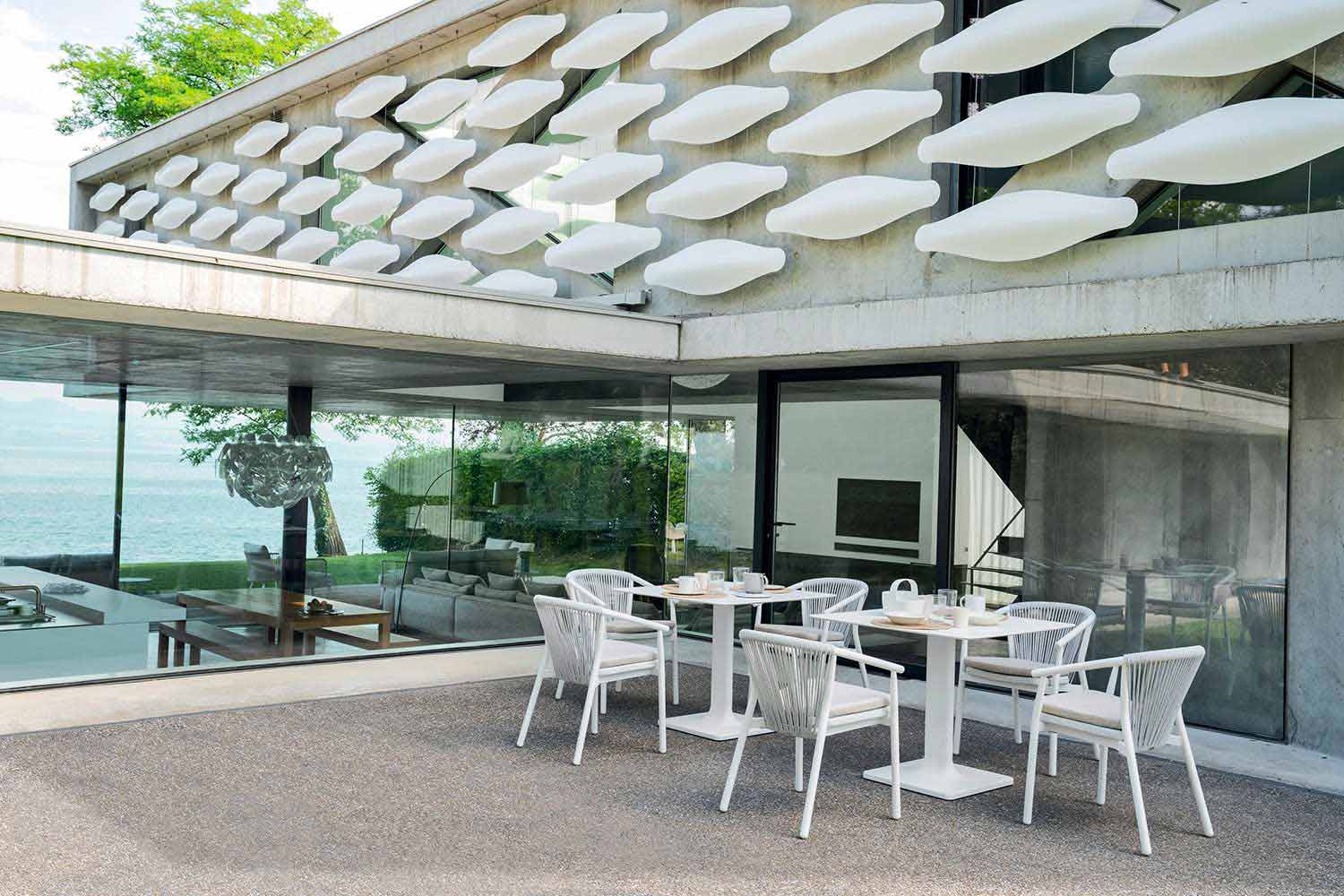 Întreținere: Colecția rezistă la soare și la ploaie. Vă recomandăm întreținerea periodică și o atenție deosebită pentru protecția articolelor în caz de condiții meteorologice nefavorabile (gheață, grindină, schimbări bruște de temperatură, umiditate, căldură persistentă, toridă sau frig extrem). Durabilitatea și integritatea acestor articole depind de grija cu care sunt întreținute. Pentru produsele din aluminiu și oțel, chiar dacă sunt protejate de tratamente și finisaje potrivite pentru utilizarea în aer liber, este esențial să împiedicați stagnarea apei în interiorul produsului. De fapt, toate articolele au găuri tehnice necesare pentru aplicarea tratamentelor și finisajelor de protecție. Introducerea apei în acele găuri și stagnarea acesteia poate provoca rugină părților interne ale conductelor.