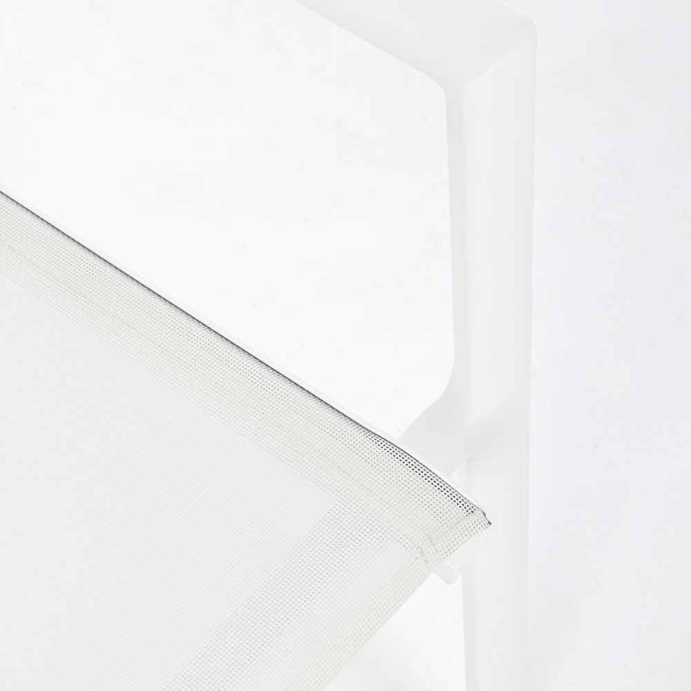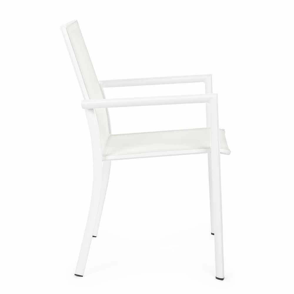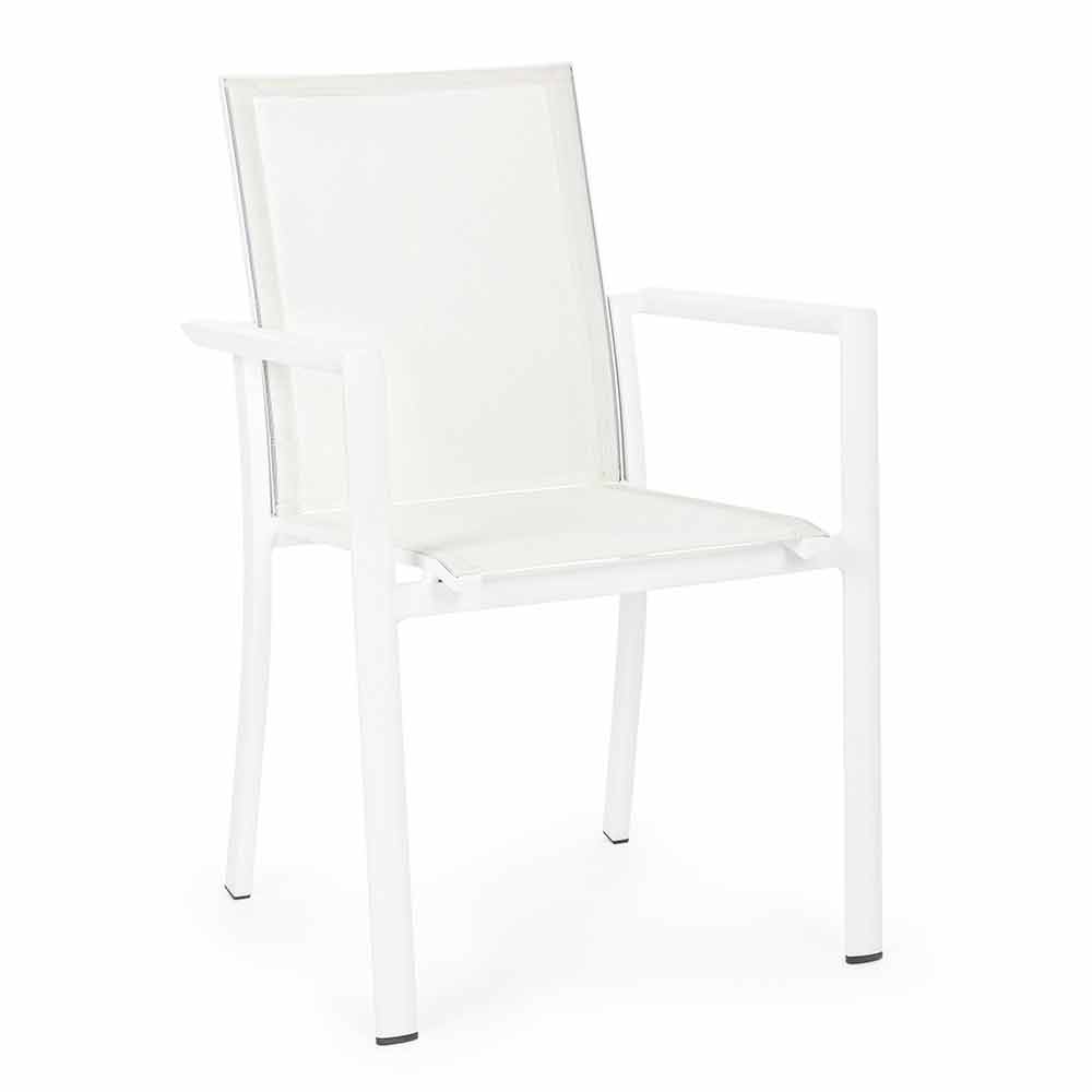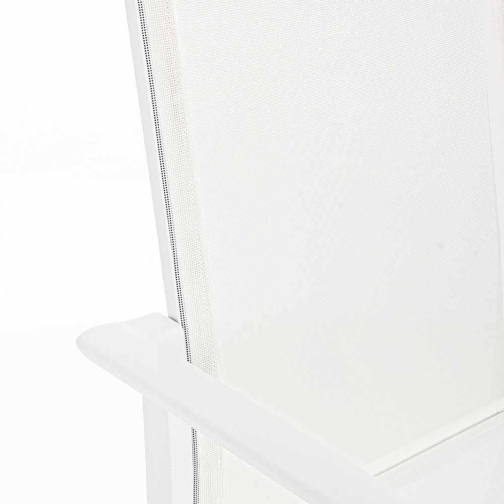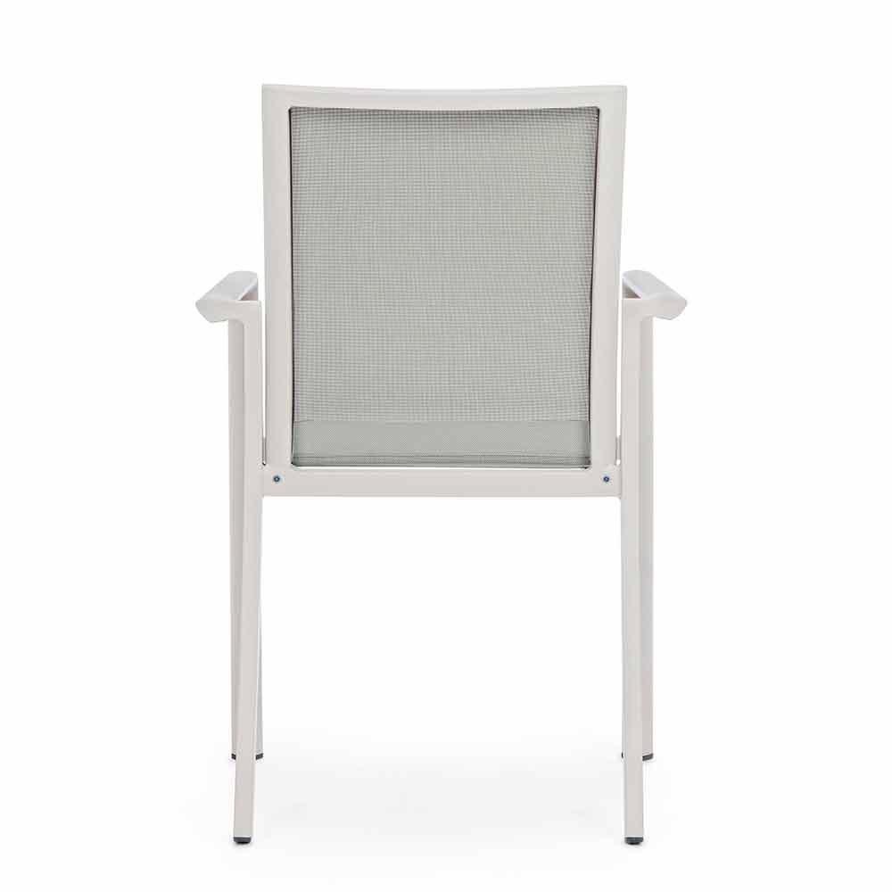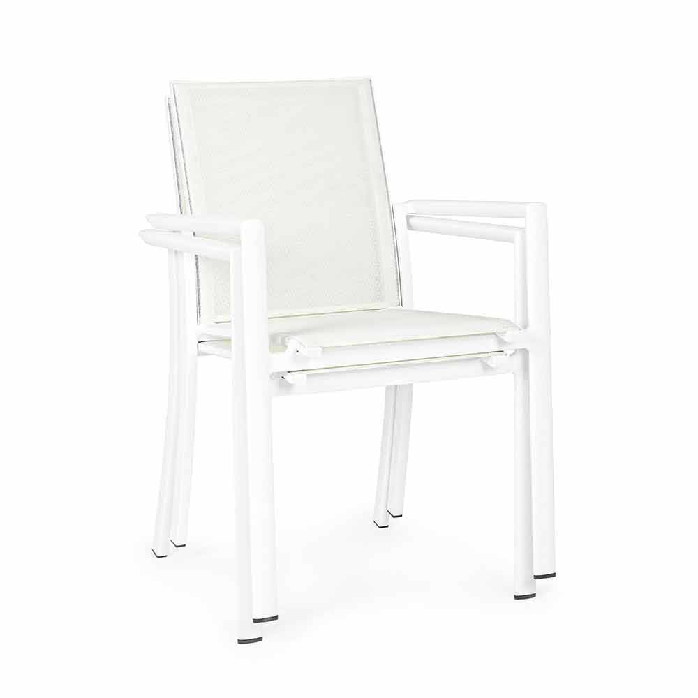 Scaun exterior cu stivuire design modern în scaun rastin sau alb din aluminiu și textilen.