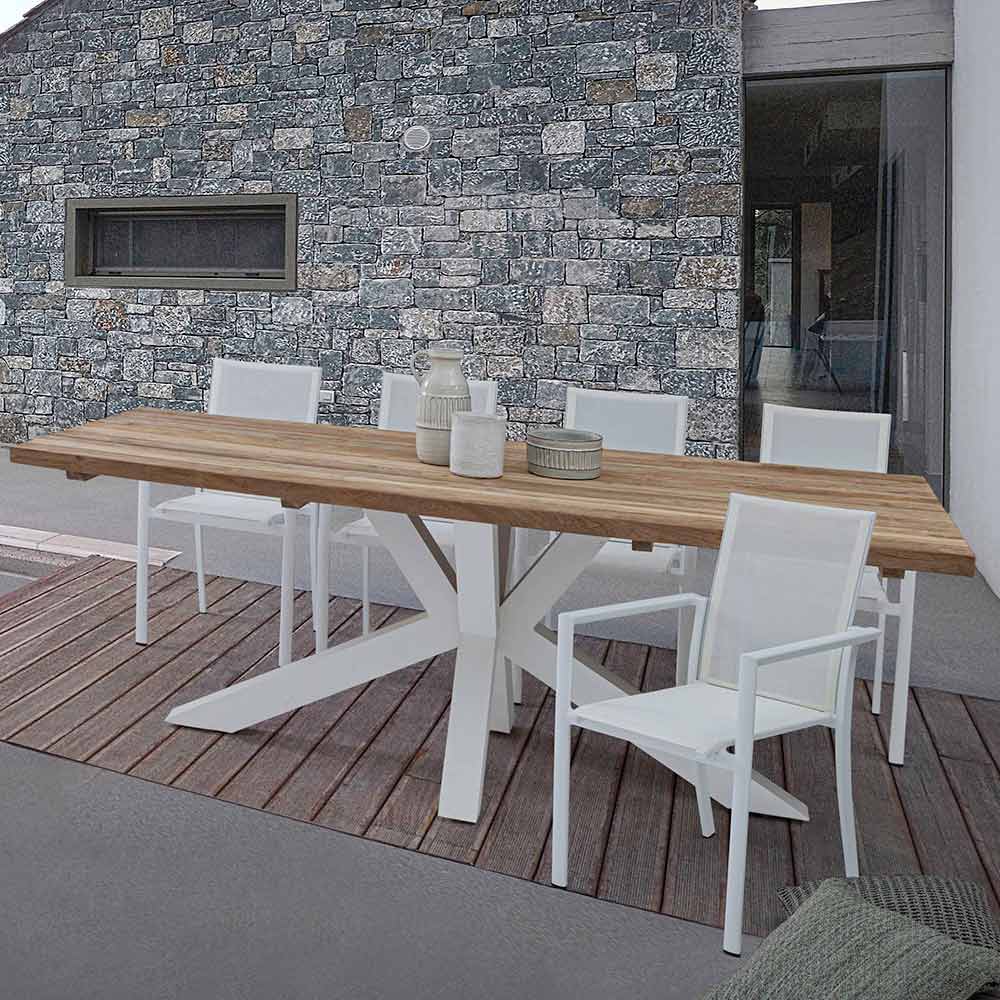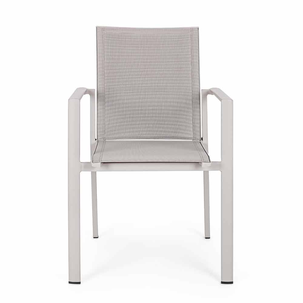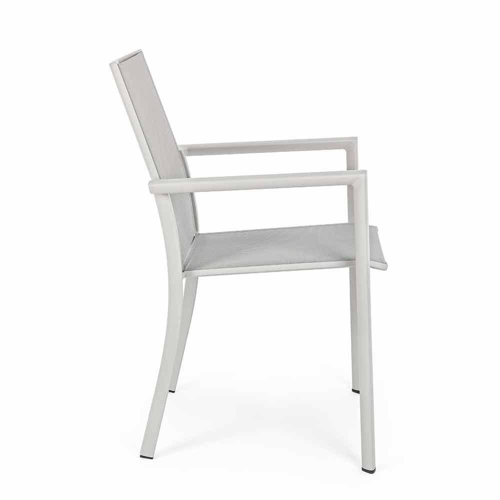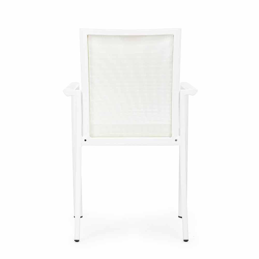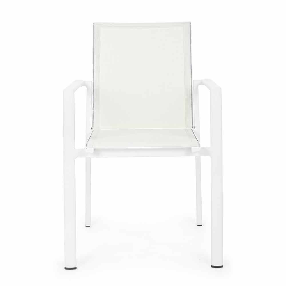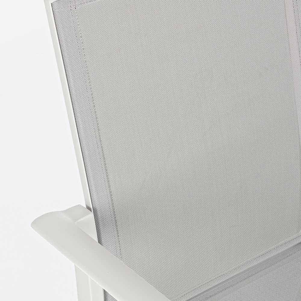 Scaun exterior cu stivuire design modern în scaun rastin sau alb din aluminiu și textilen.