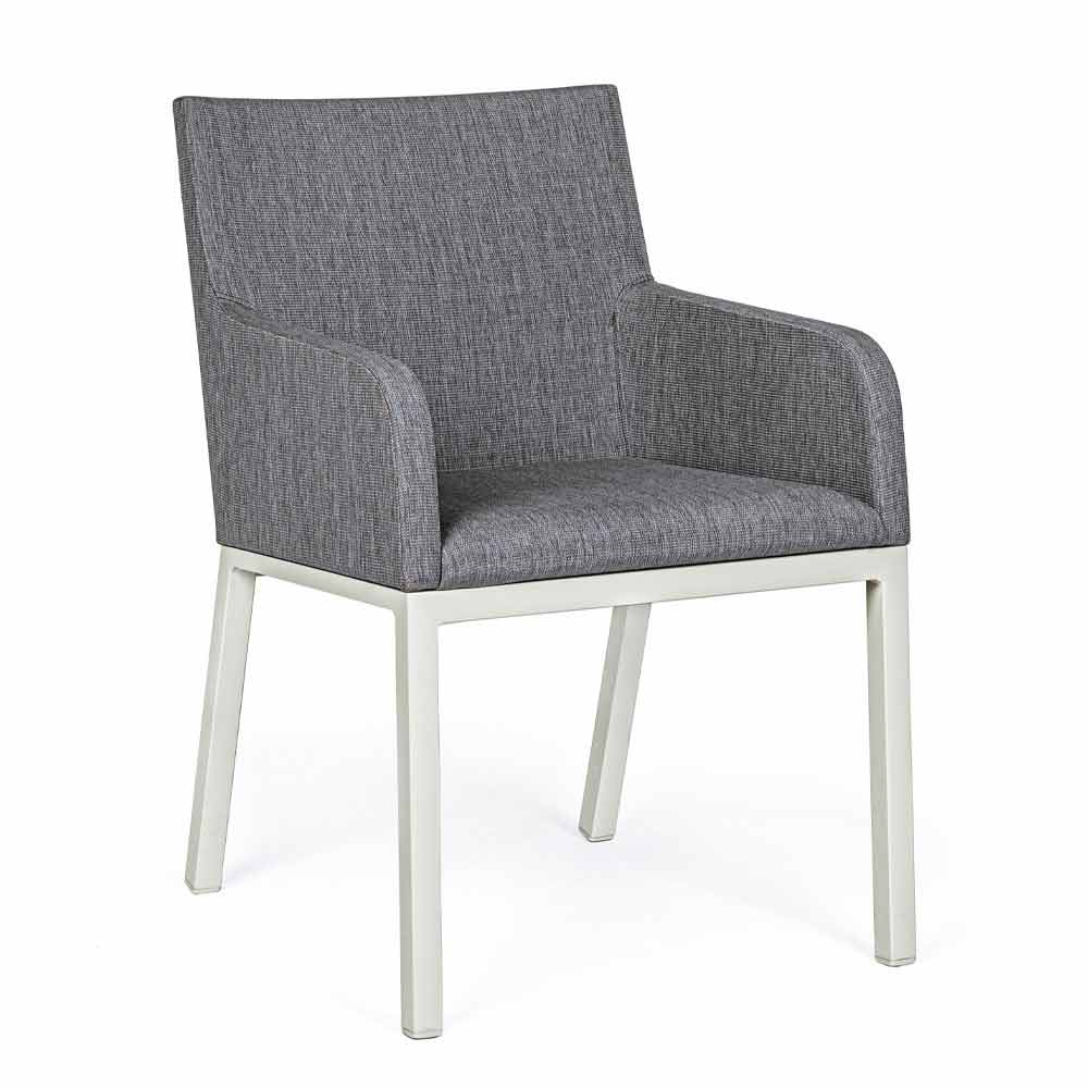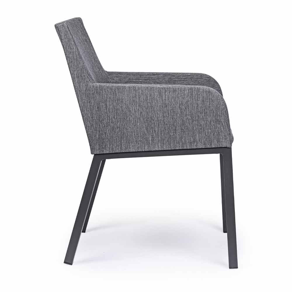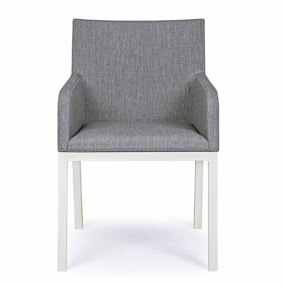 Scaun de exterior tapițat în țesătură cu picioare din aluminiu, 4 bucăți.