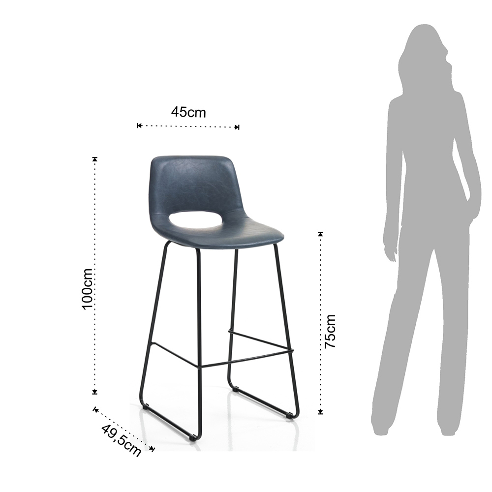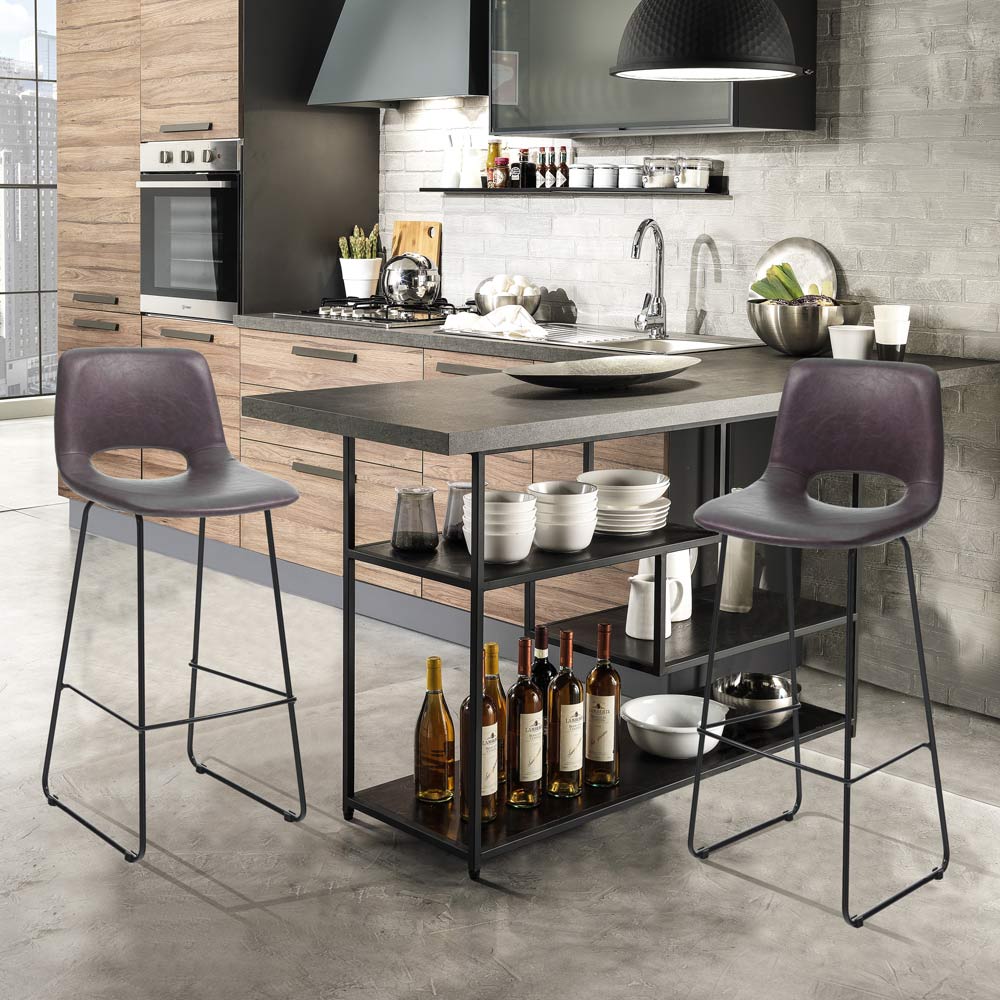 Scaun inalt de bucatarie din metal vopsit si piele sintetica, 2 bucati.