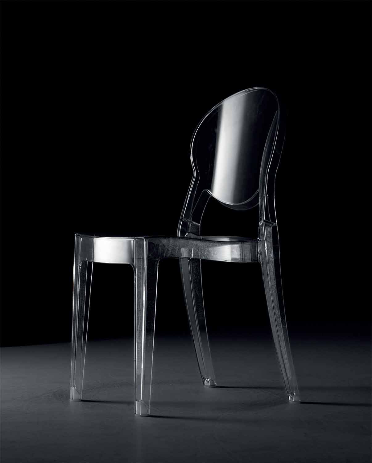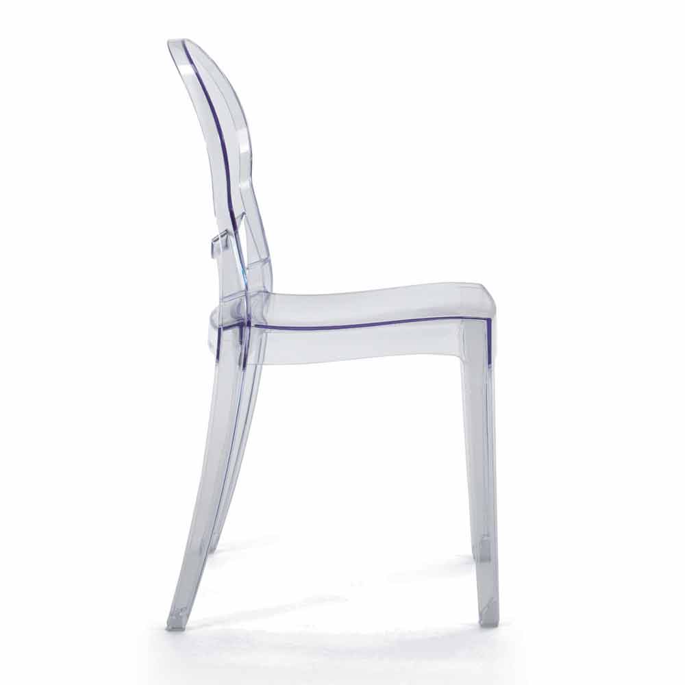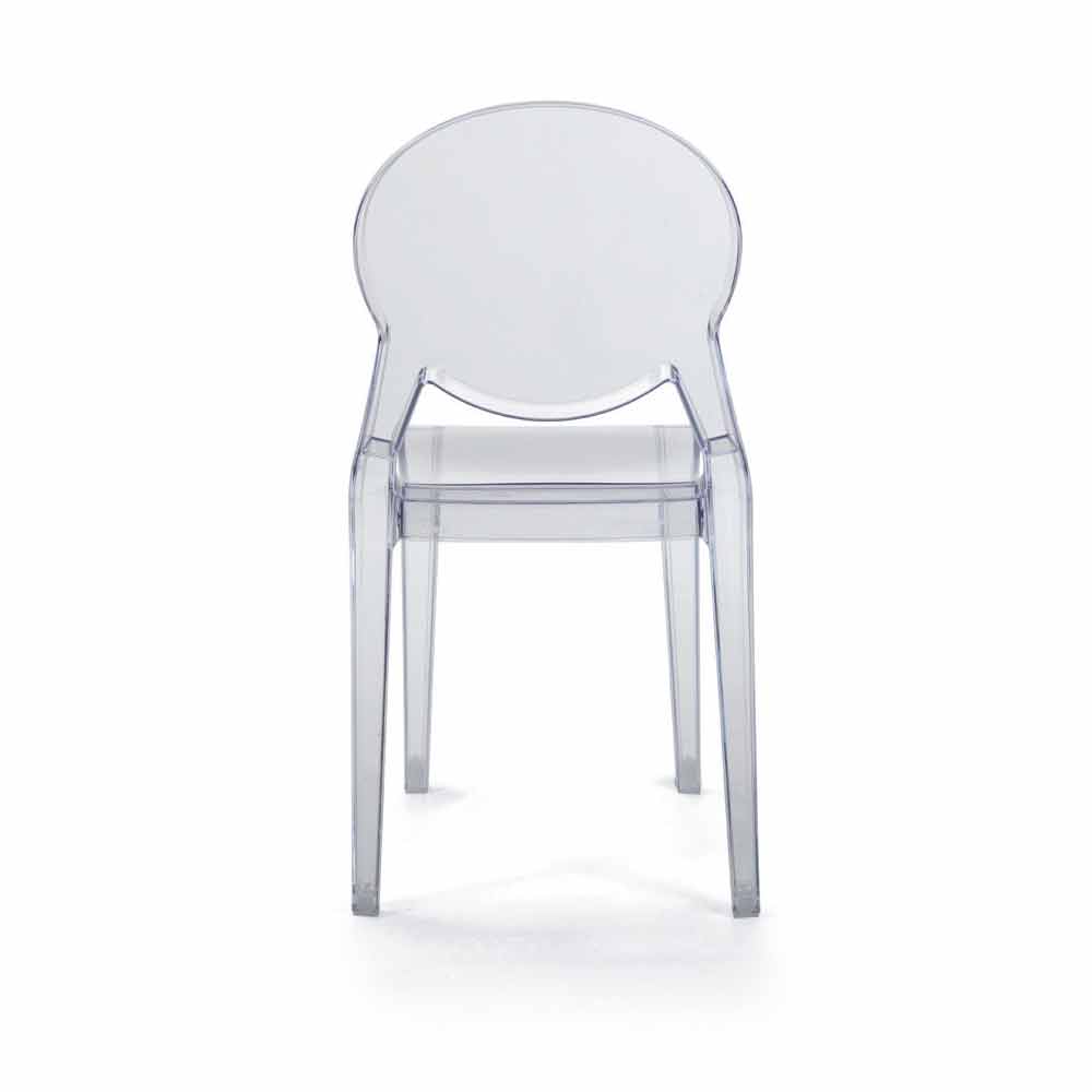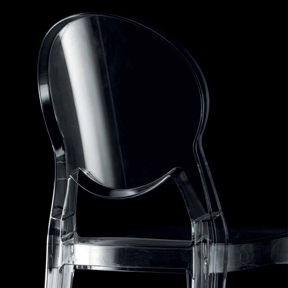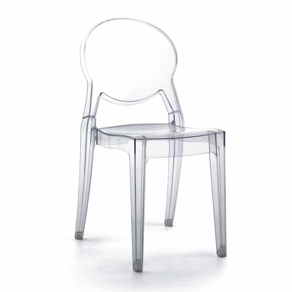 Scaun stivuibil de design modern potrivit pentru utilizare în exterior și în interior din policarbonat transparent, fabricat în Italia.
