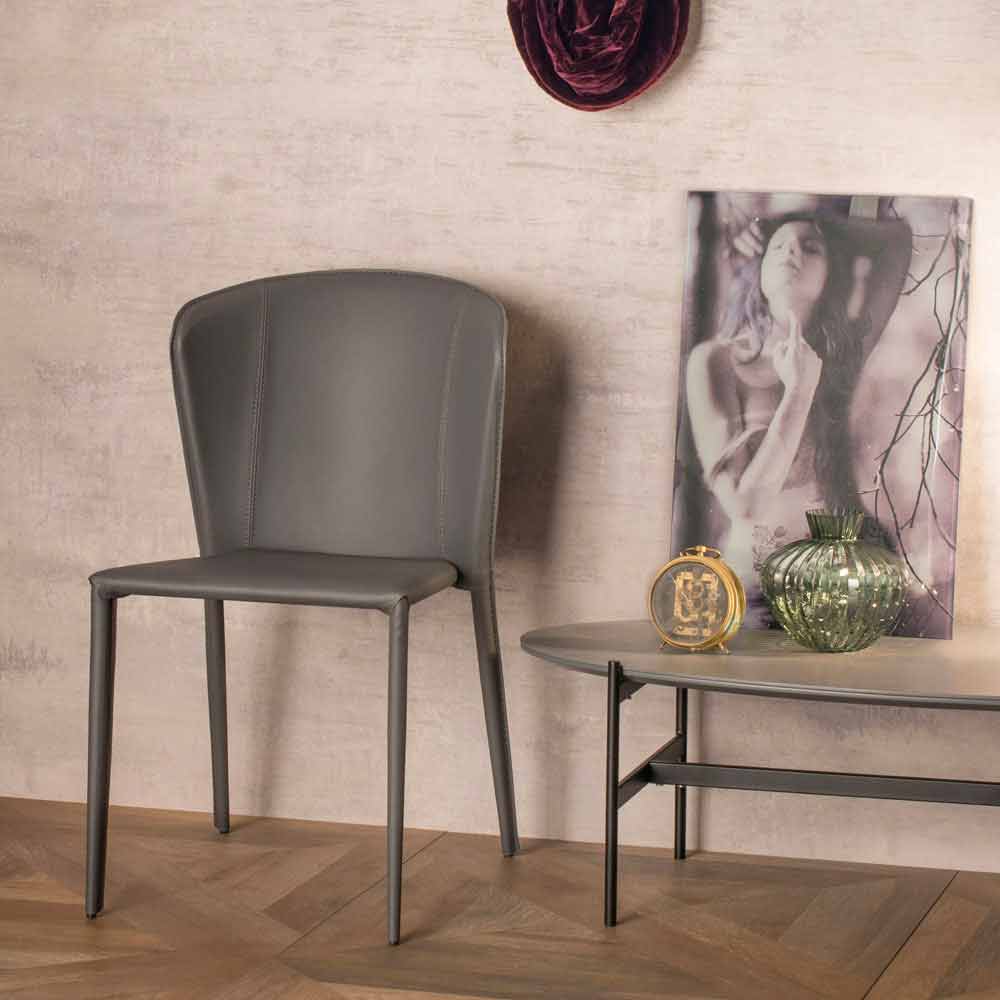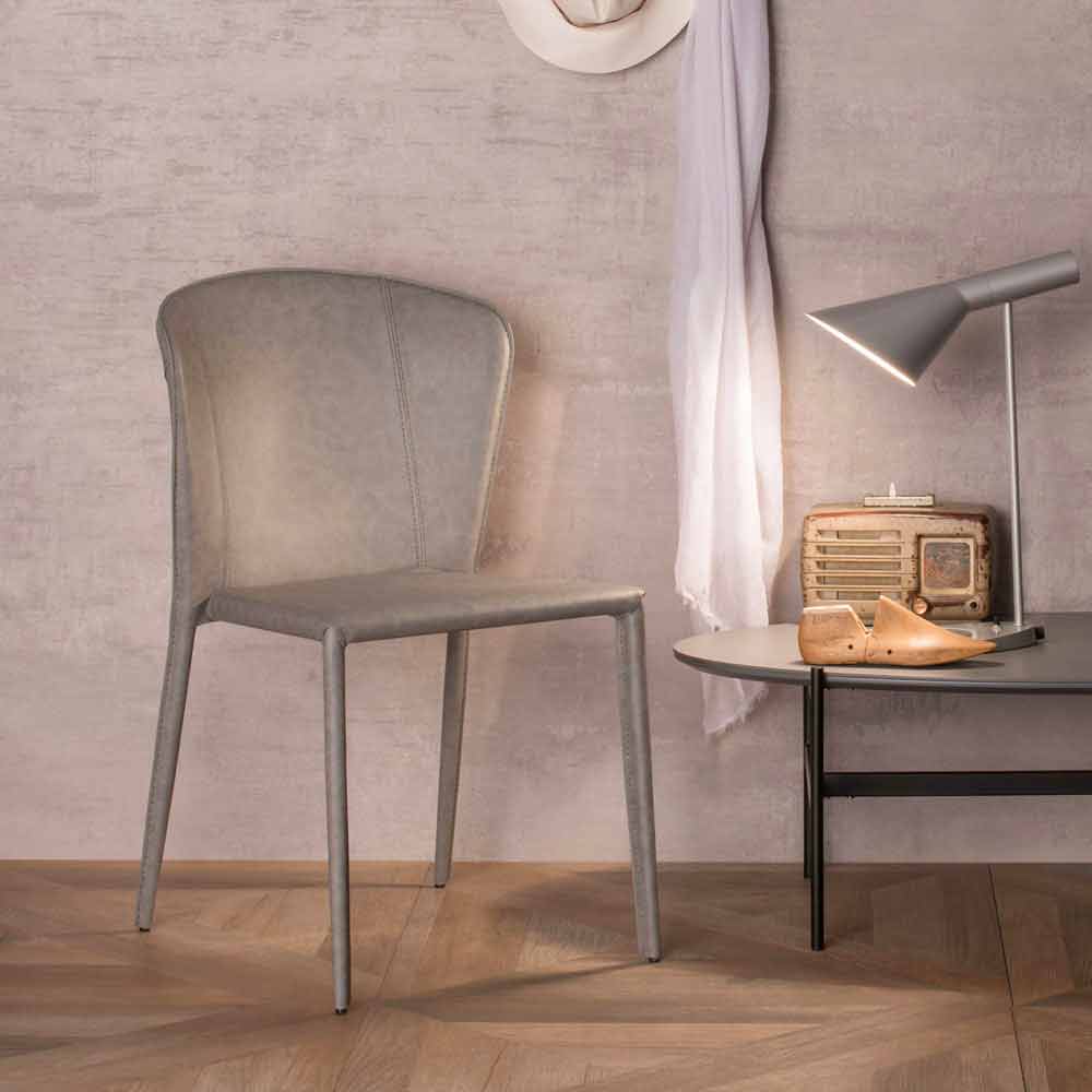 Are o structură metalică complet acoperită cu imitație de piele într-o gamă de culori: gri porumbel, gri, gri închis, piele și alb.