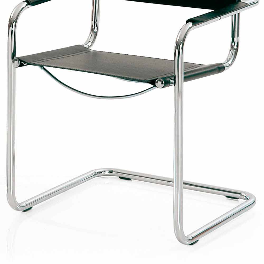 Scaunul Cirillo pentru sală de ședințe sau sală de conferințe cu cotiere este ideal deoarece reflectă toate aceste caracteristici; vine cu o structură din metal cromat și scaun, spătar și cotiere din piele regenerată neagră.