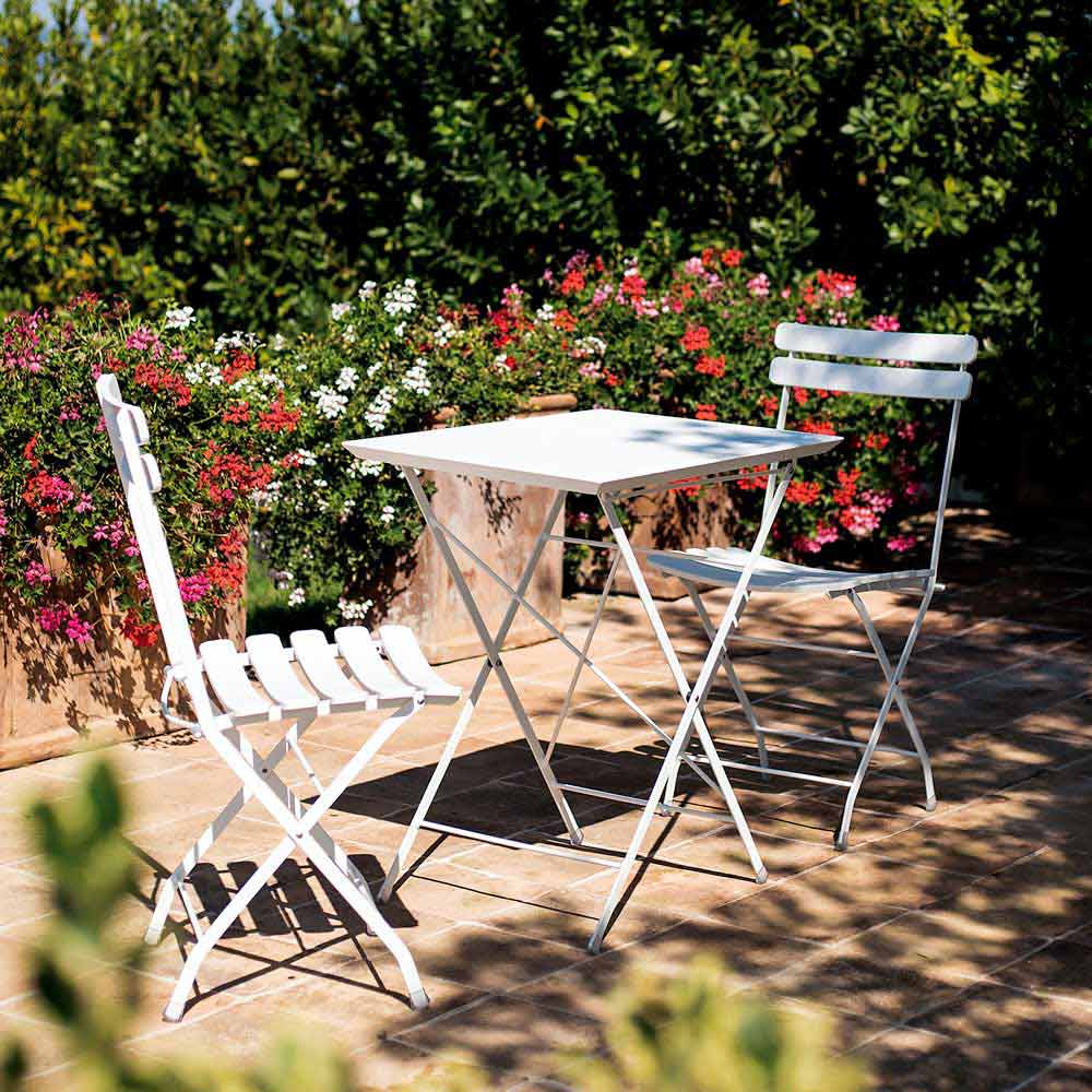 fontă galvanizată vopsită în câmp electrostatic cu pulberi termorezistente, care permit produsului să dobândească rezistență și soliditate, ceea ce, împreună cu designul minimalist și liniile ușoare, face ca scaunul să fie practic și ușor. Datorită gamei largi de culori disponibile și posibilității de a fi pliat pentru o mai bună optimizare a spațiului, acest scaun se potrivește perfect oricărei situații în aer liber, de la cele private, cum ar fi grădini și terase, până la medii precum baruri și restaurante.