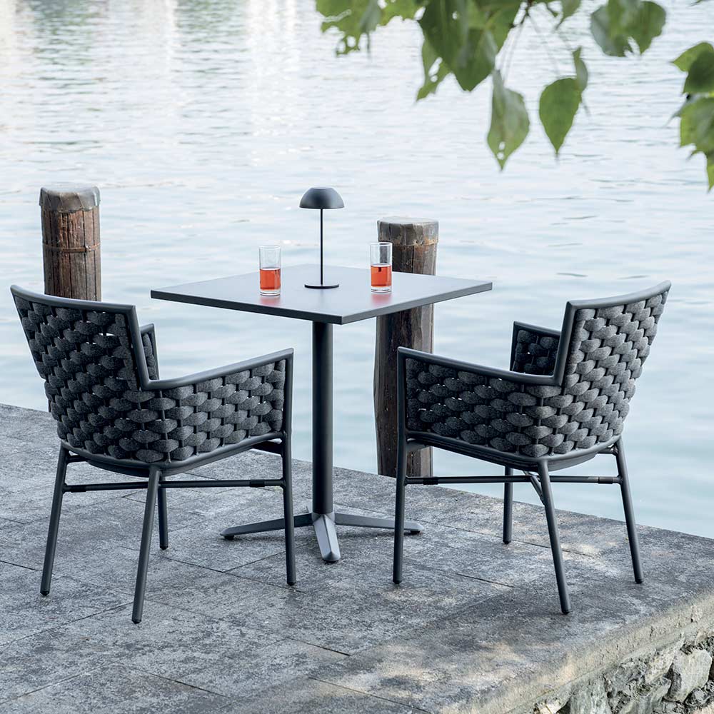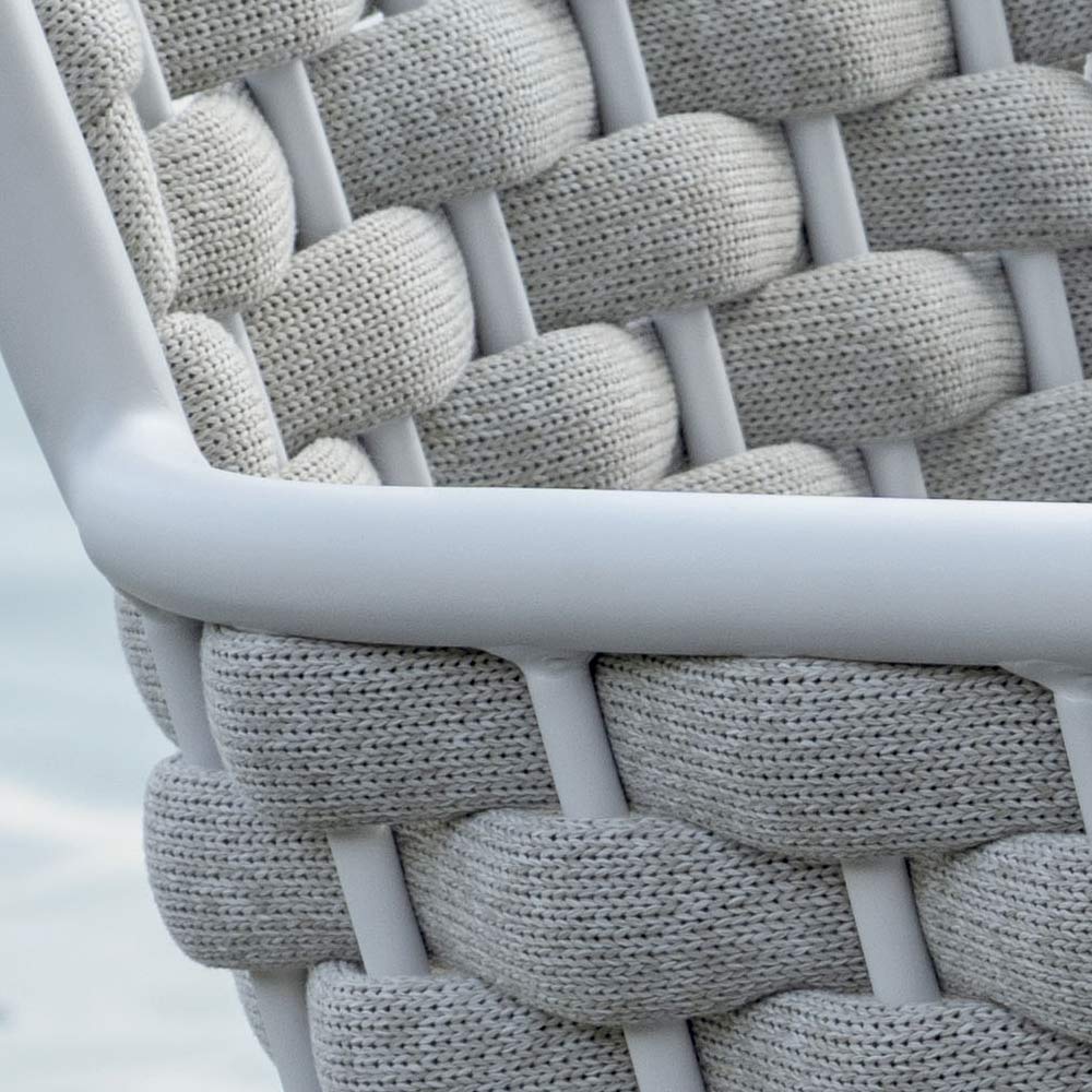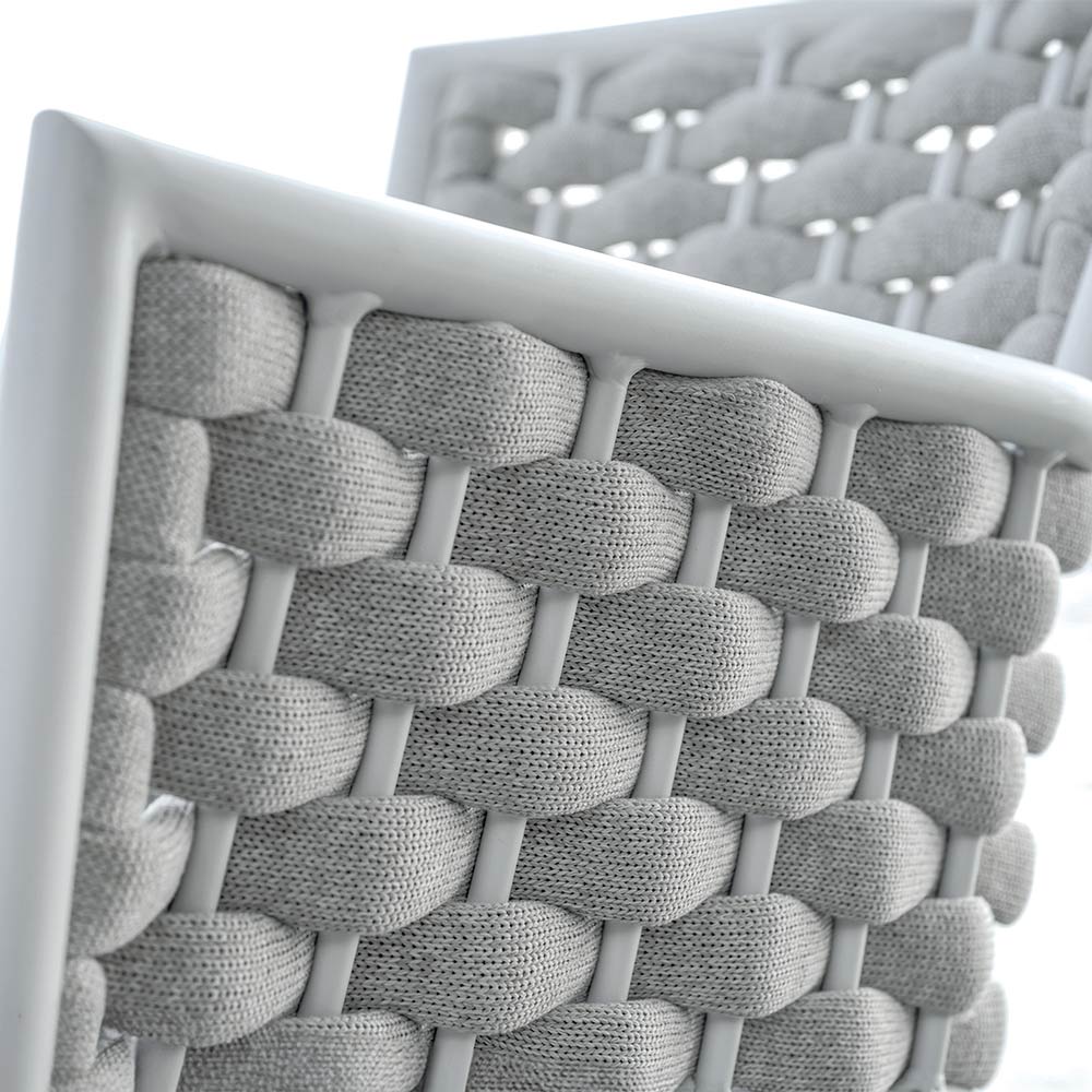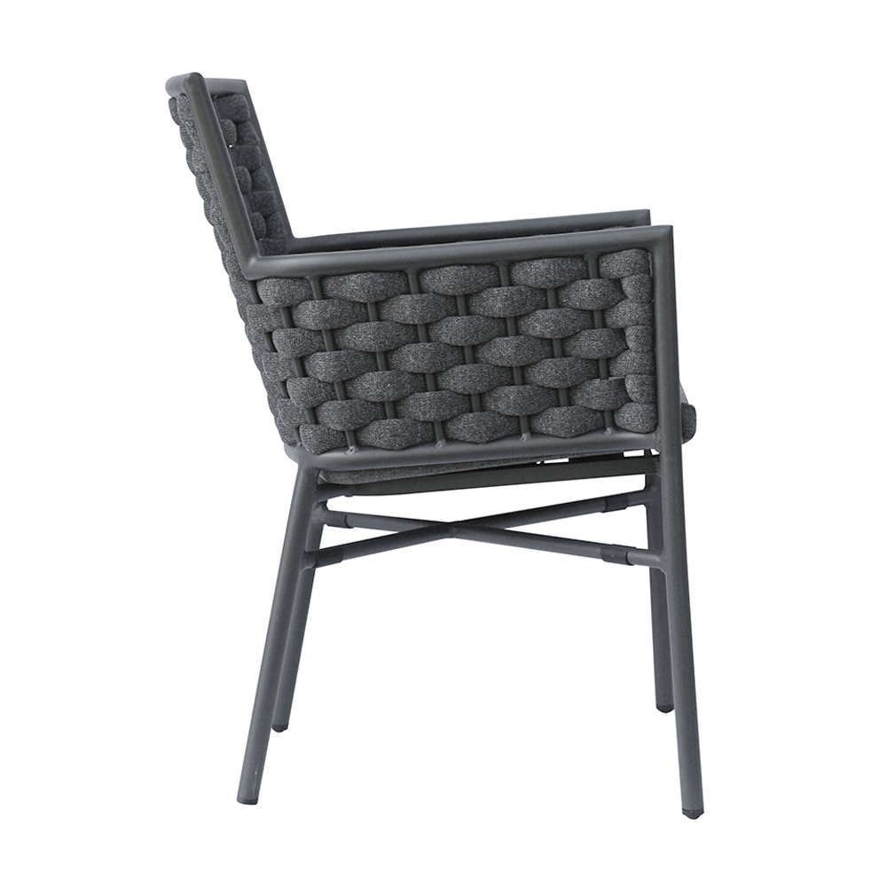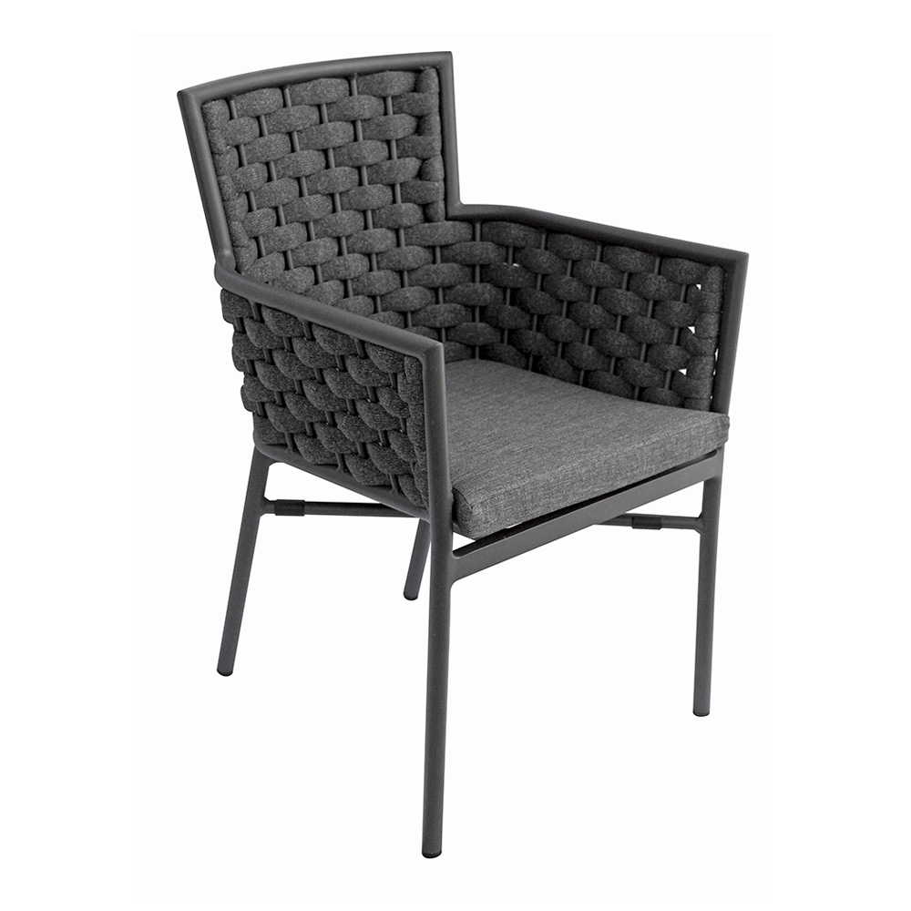Refinamentul și confortul se întâlnesc în acest scaun de exterior cu un design modern și confortabil. Spătarul și brațele din frânghie țesută moale și durabilă adaugă o notă de eleganță artizanală, în timp ce tapițeria oferă un confort superior, ideal pentru momentele de relaxare în aer liber.