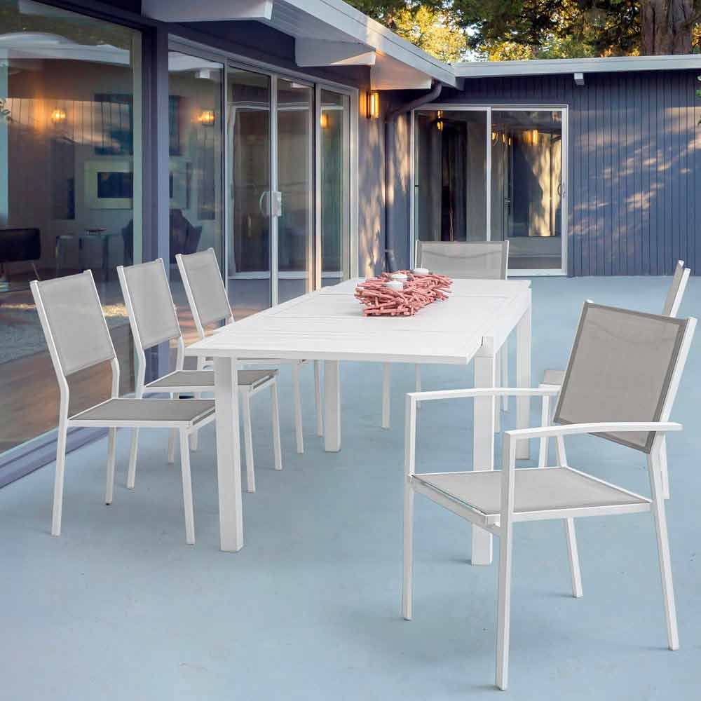Scaun de grădină stivuibil din aluminiu și textilenă alb sau gri - Floraforma