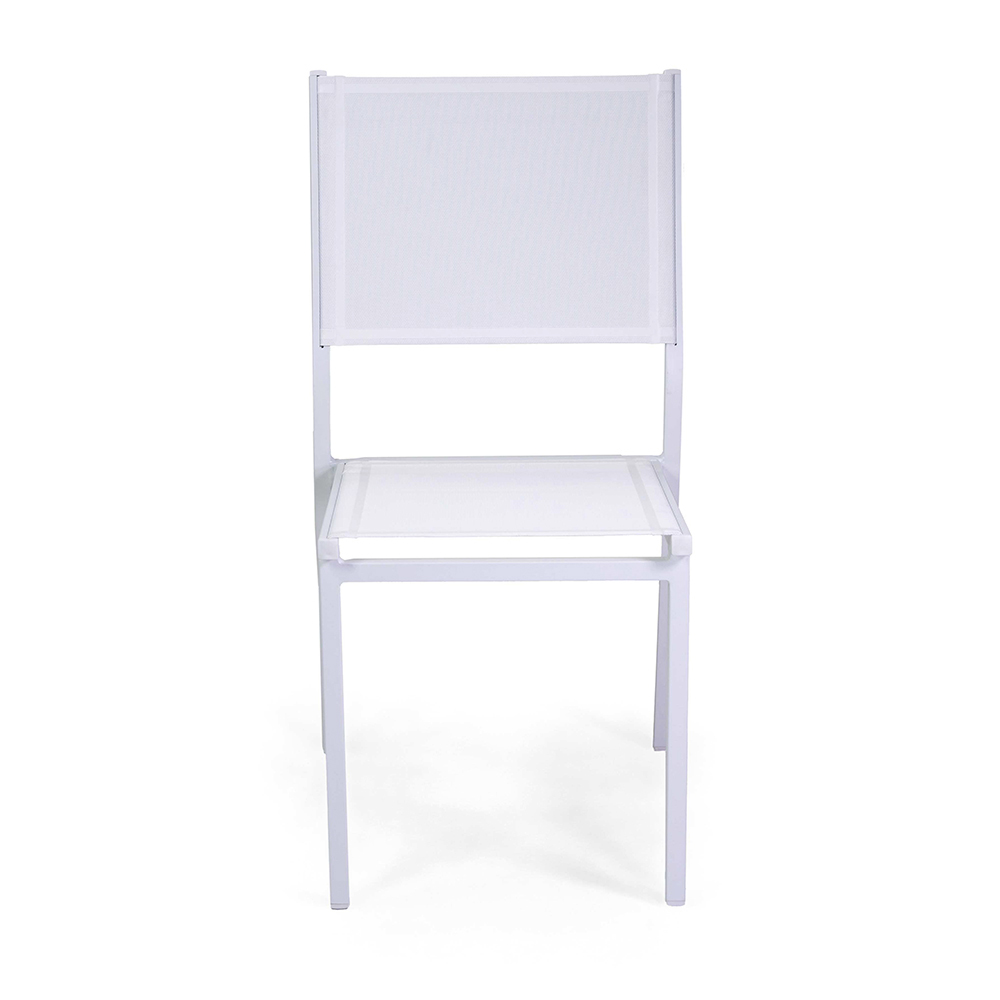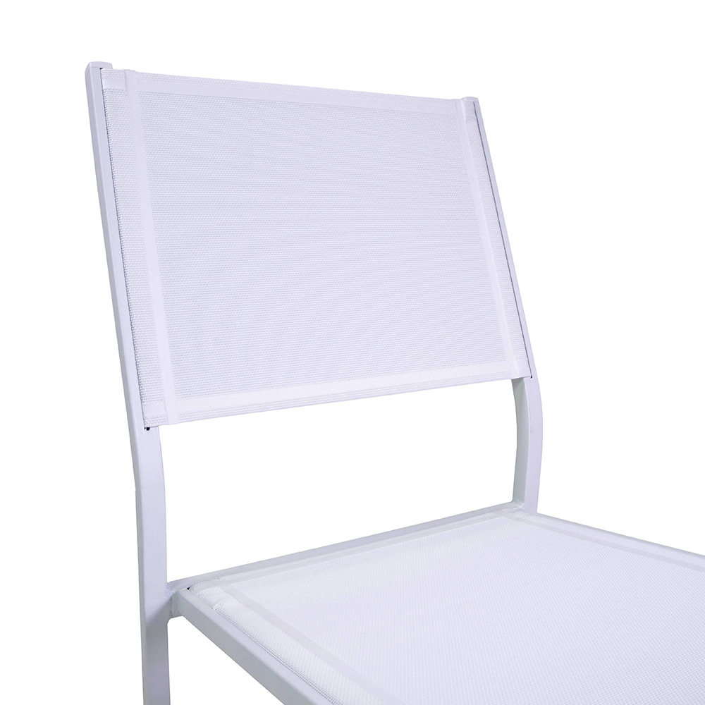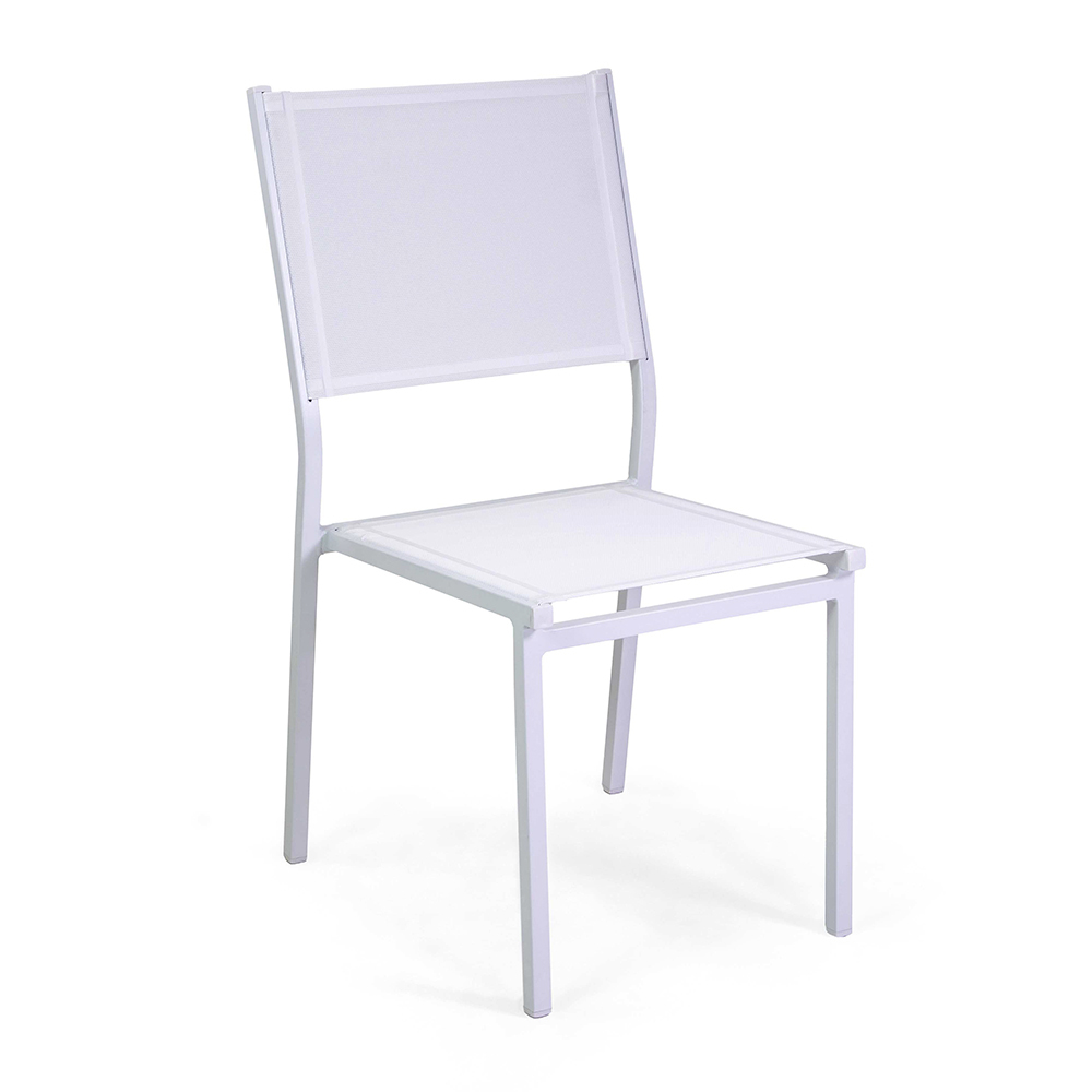Acest cavalet cu un cadru din aluminiu acoperit cu pulbere albă reprezintă echilibrul ideal între funcționalitate și stil, perfect pentru medii exterioare, cum ar fi grădini și terase. textilenul alb nu numai că îi conferă un aspect modern și elegant, dar asigură, de asemenea, un scaun confortabil și rezistent la intemperii.