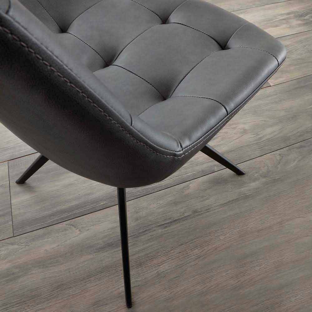Confort maxim asigurat pe acest scaun realizat cu o structură metalică vopsită în negru și un scaun tapițat în țesătură sau nubuc eco disponibil în patru culori diferite:
