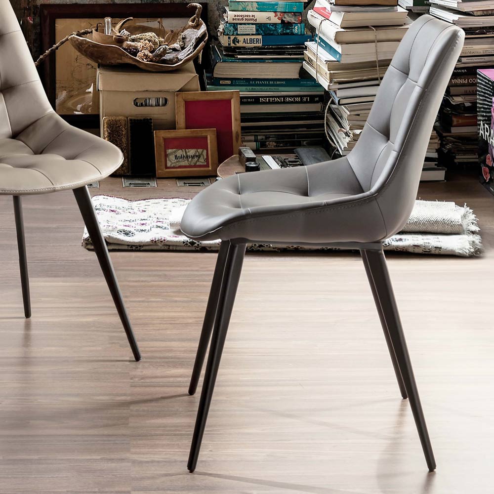 Scaun modern tapițat în piele ecologică cu picioare din metal vopsit, 2 piese.