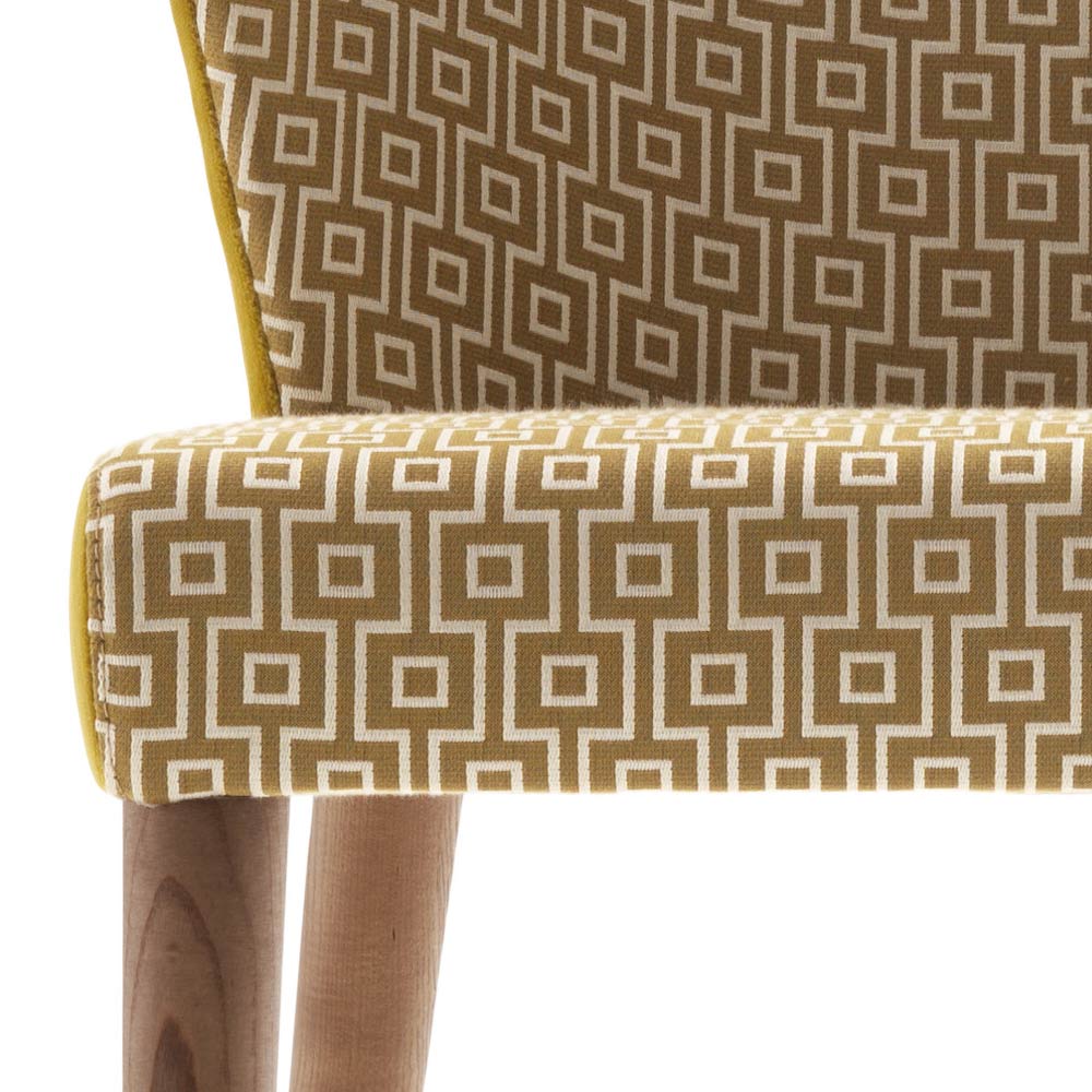 Scaun modern de design cu picioare din lemn masiv din nuc canaletto; scaun și spate în poliuretan spumă rece și acoperire de țesături.