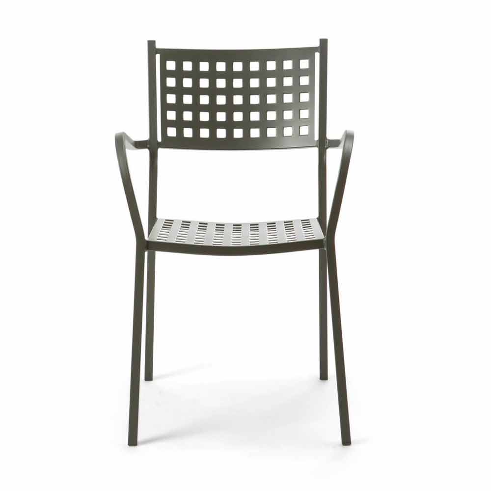 Scaun modern de exterior din fontă galvanizată vopsită în câmp electrostatic, stivuibil, fabricat în Italia, 8 piese.