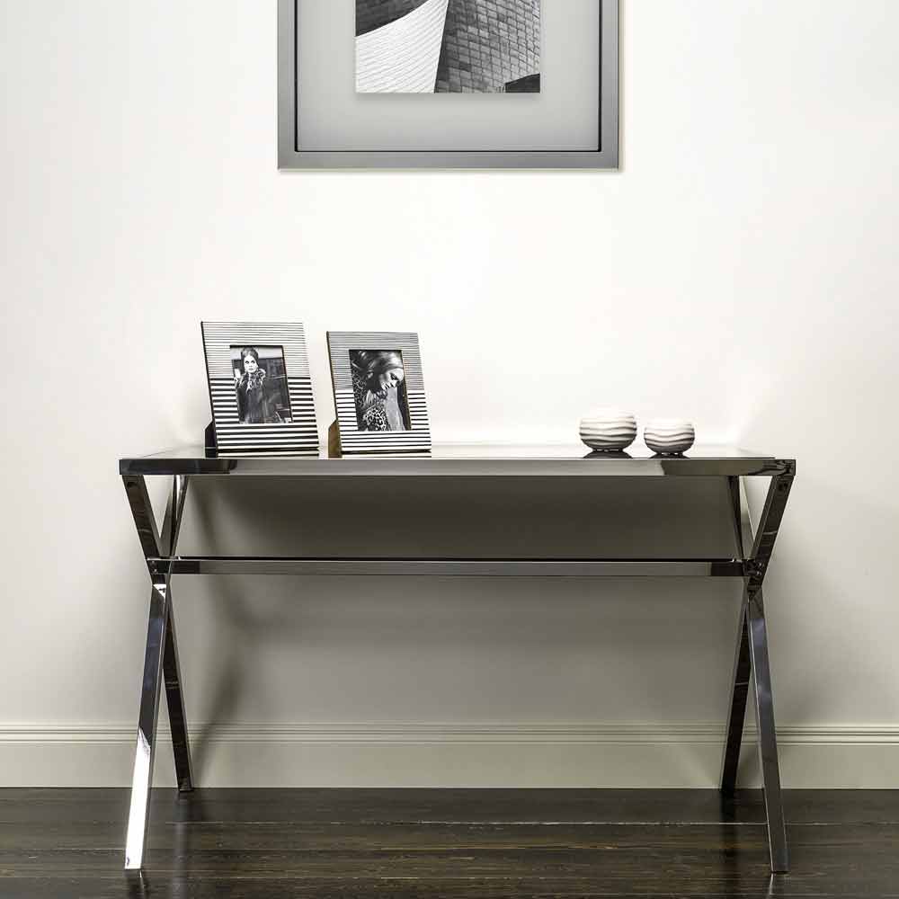 Scrierea de design din oțel și sticlă negru lucios L120xH75cm Millon