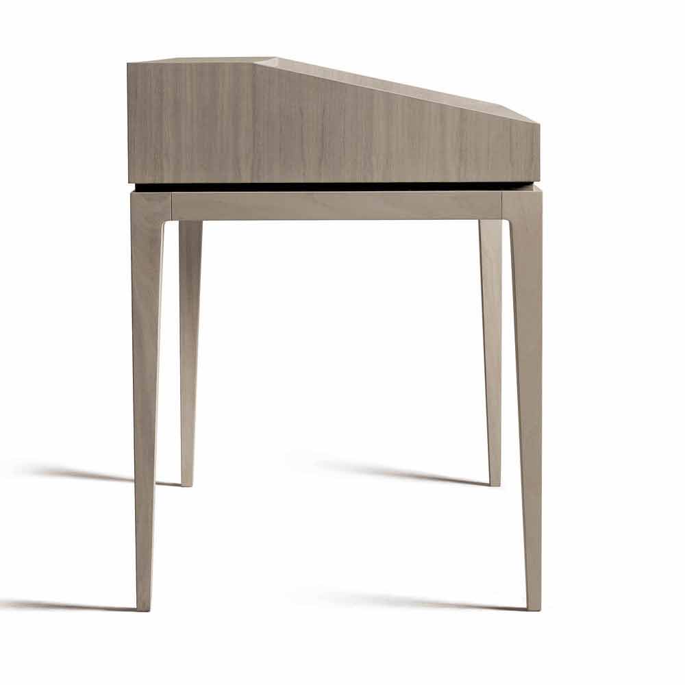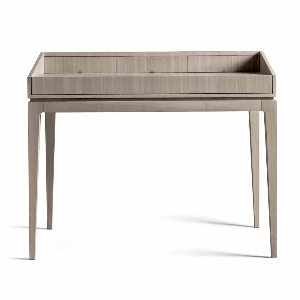 birou elegant, în esență de nuc naturale sau în nuanțe de gri nuc naturale, care ascunde expresia stilistică a companiei și măiestria cu care se face acest element de mobilier și design în fiecare finisaj.