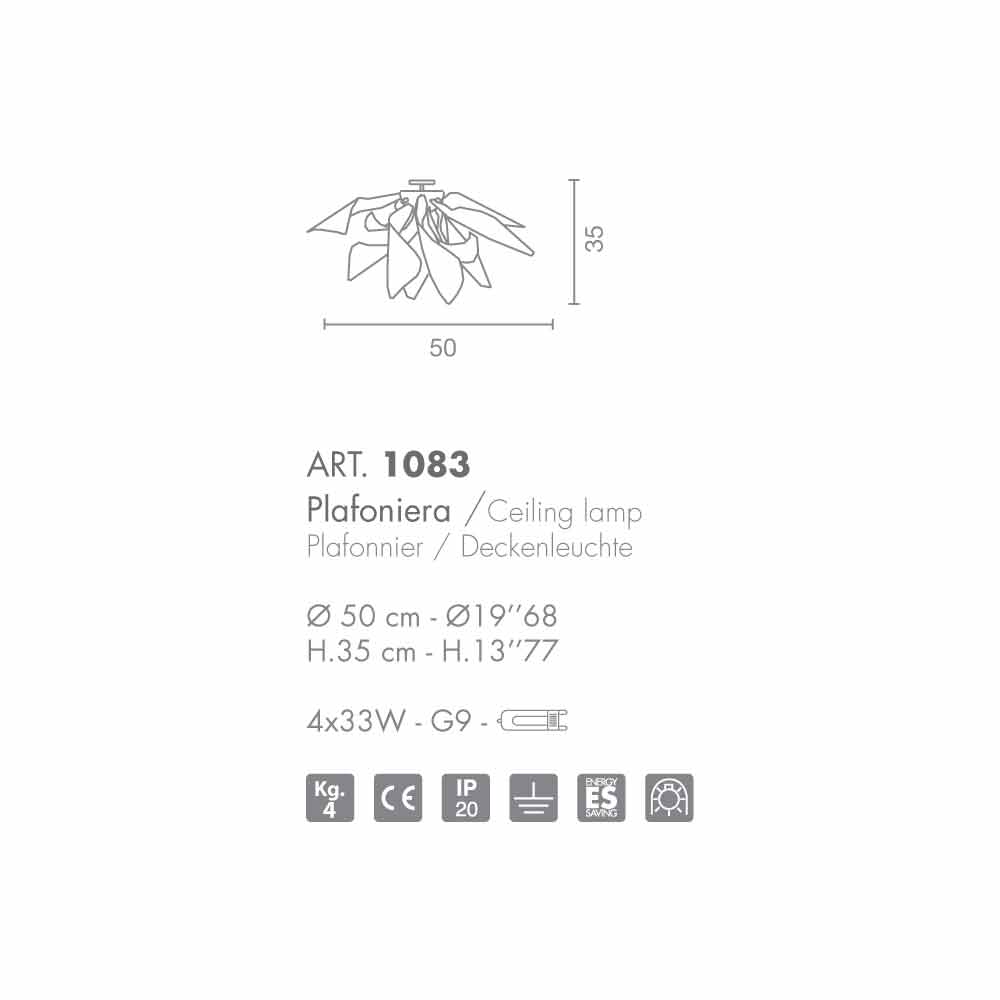 Ghimbirul este o colecție de dimensiuni importante, capabile de a îmbogăți un mediu cu prezența a numeroase benzi sale care dansează în aer. În ciuda faptului că a făcut în întregime din metal, prezența becurilor libere asigură un rezultat excelent luminos și este proiectat pentru „utilizarea a 4 33W bulbi - G9.