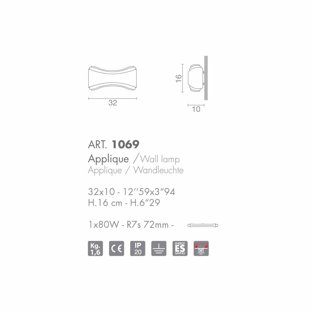 Selene Ionica Appliqué 32x10 H16cm oțel și sticlă realizate în Italia