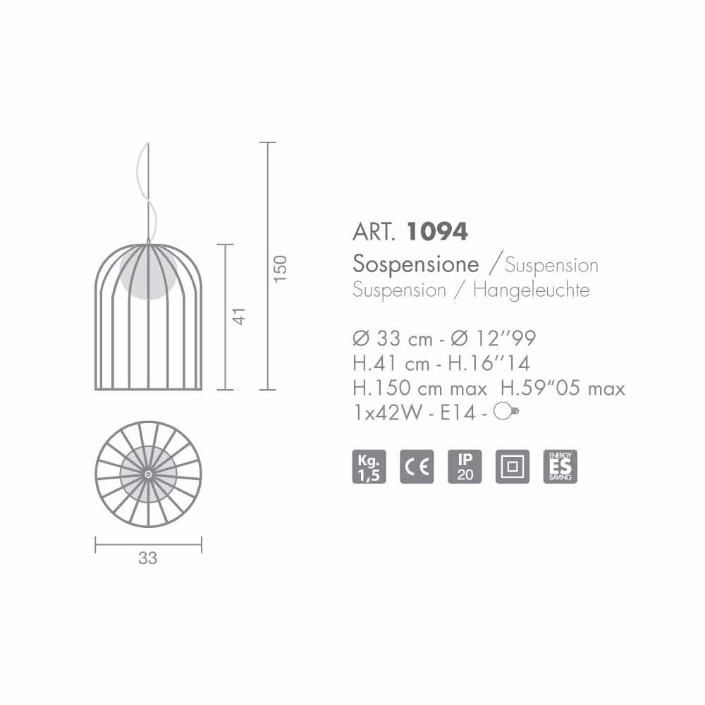 Selene Kluvì pandantiv lampa sticla suflata cu colivie de metal făcute în Italia