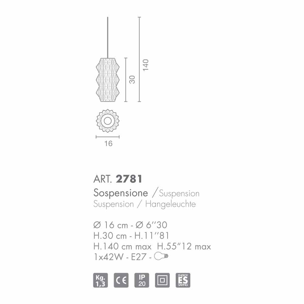Selene Origami pandantiv lampa sticla suflata O16 H 30 / 140cm