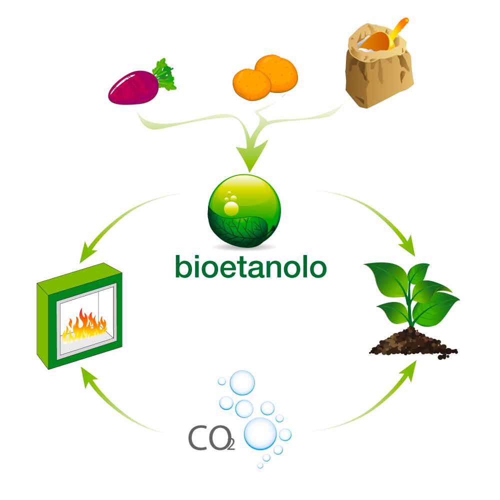Arderea bioetanolului nu eliberează mirosuri și produce doar o cantitate de dioxid de carbon (CO2) egală cu cea produsă de prezența unei ființe umane. Este deosebit de ecologică, deoarece cantitatea de CO2 eliberată în timpul arderii este aceeași cu cea absorbită cu câțiva ani mai devreme prin fotosinteză. Astfel, arderea bioetanolului nu modifică echilibrul natural al sistemului ecologic.