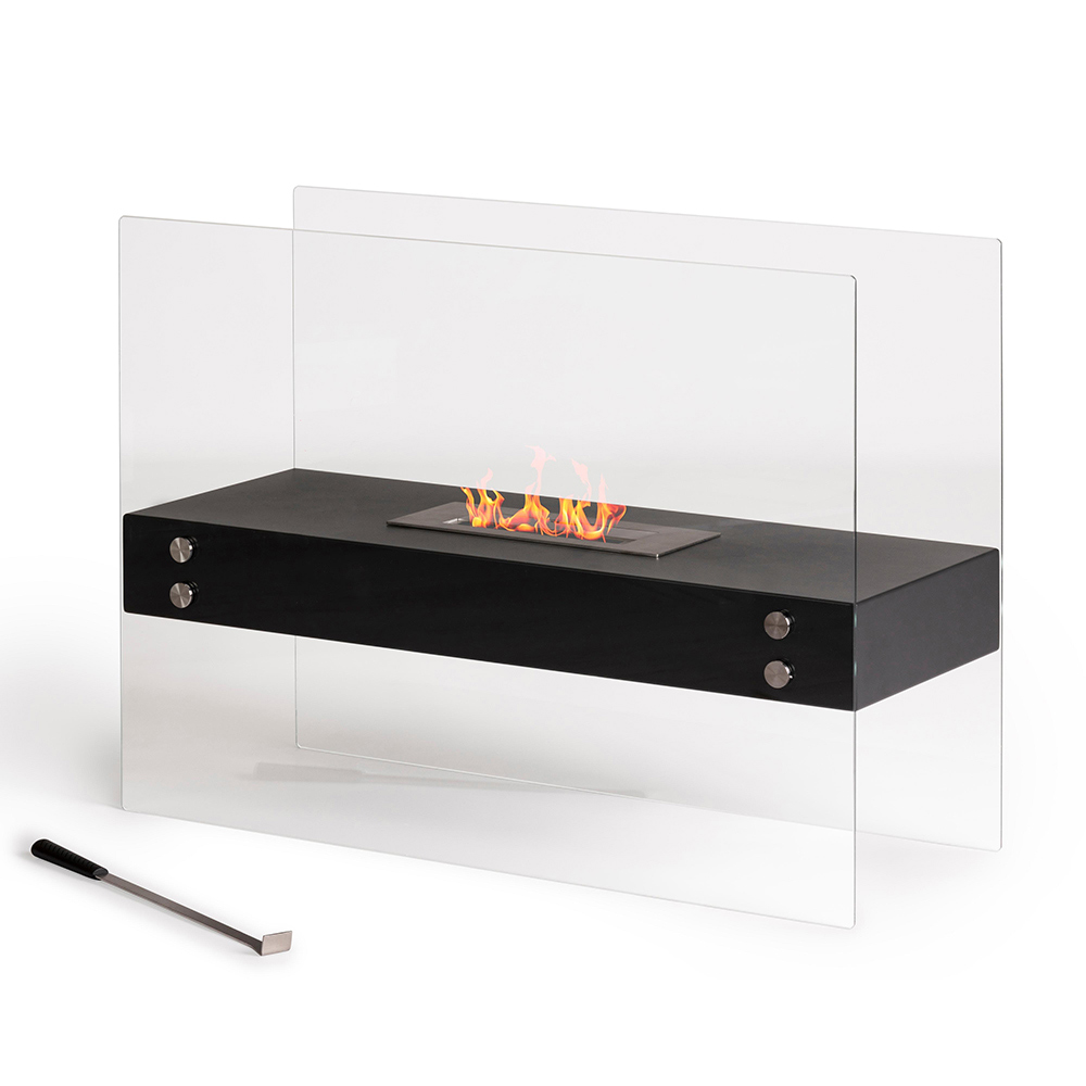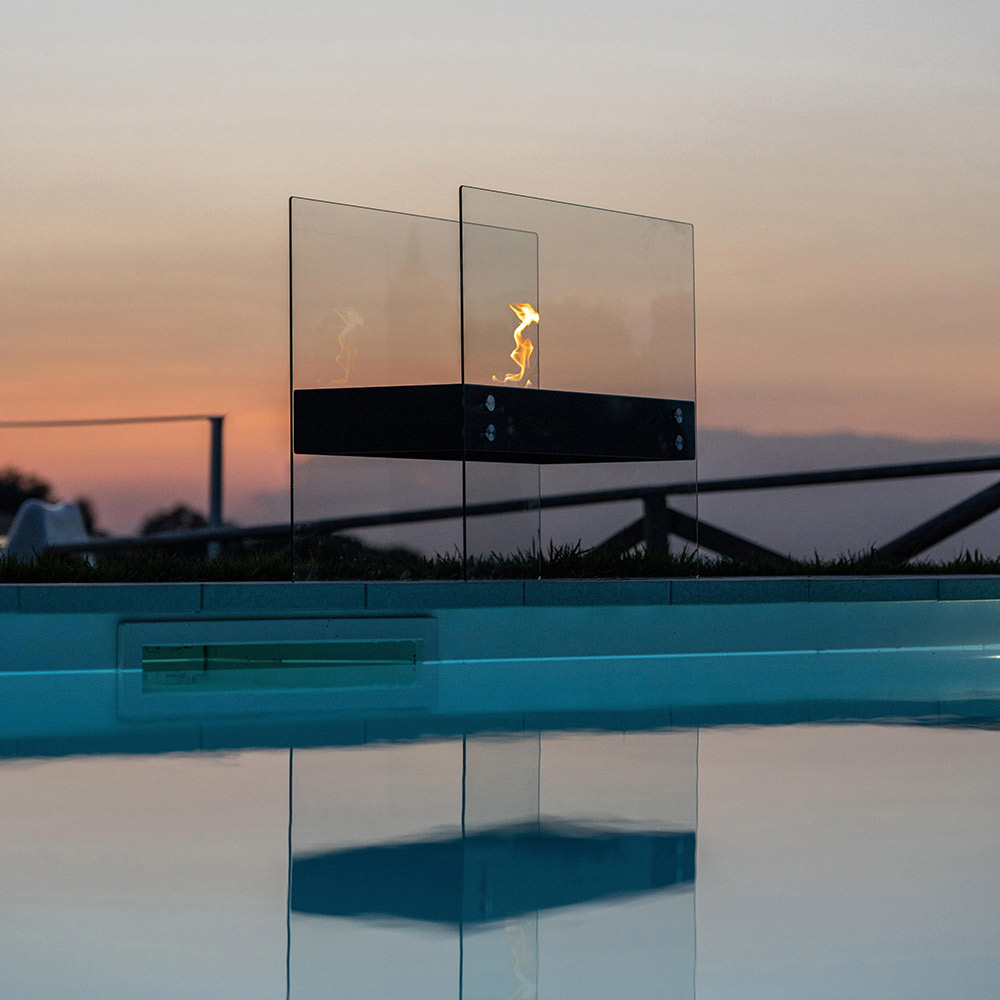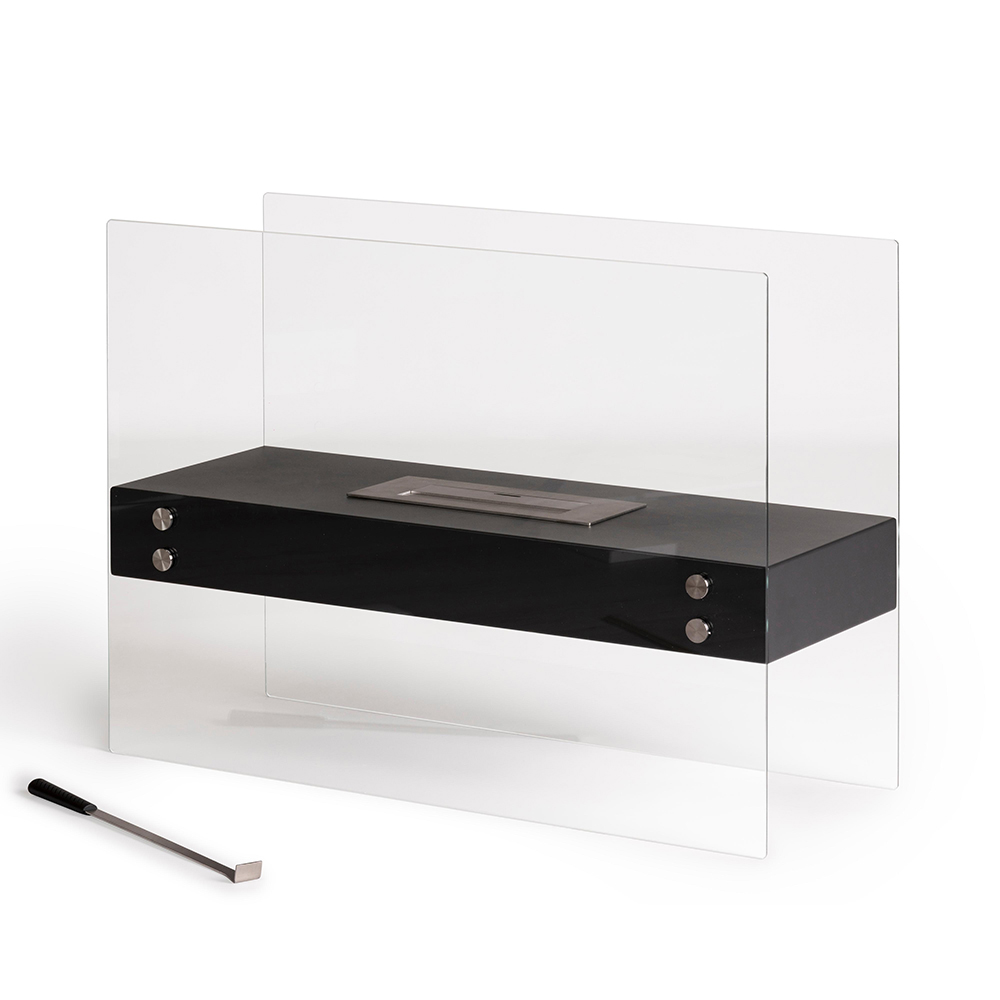 Biosemineu in pardoseala pentru uz interior sau exterior din metal vopsit negru si sticla securizata transparenta util pentru protejarea flacarii de eventualele rafale de vant, evidentiind-o. Complet cu instrument de control al flăcării și manual de instrucțiuni. Un element de mobilier elegant și funcțional ideal pentru încălzirea mediilor casnice și contractuale atât în interior cât și în exterior. Estetica sa minimală și rafinată o face de asemenea apreciabil atunci când este oprit deoarece completează spațiul înconjurător prin a notă de stil rafinat și contemporan .