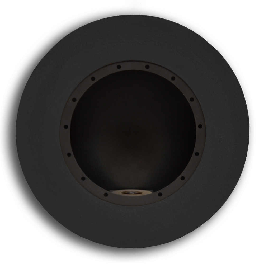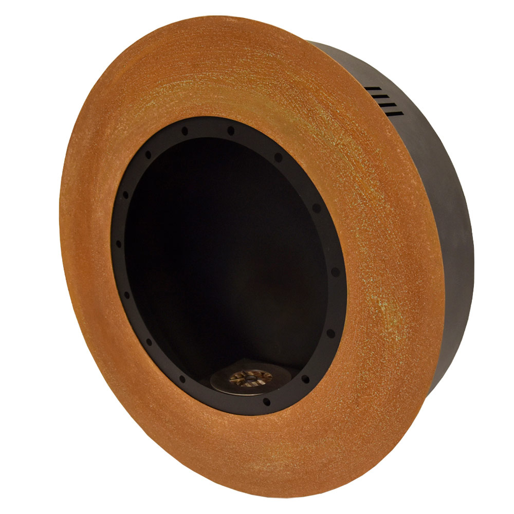 Șemineu de perete cu design modern și rotund din oțel, fabricat în Italia.