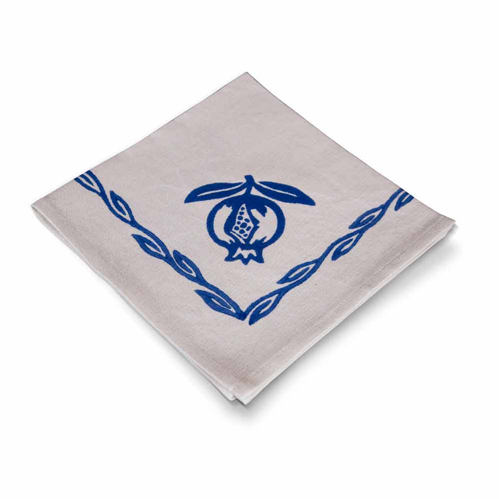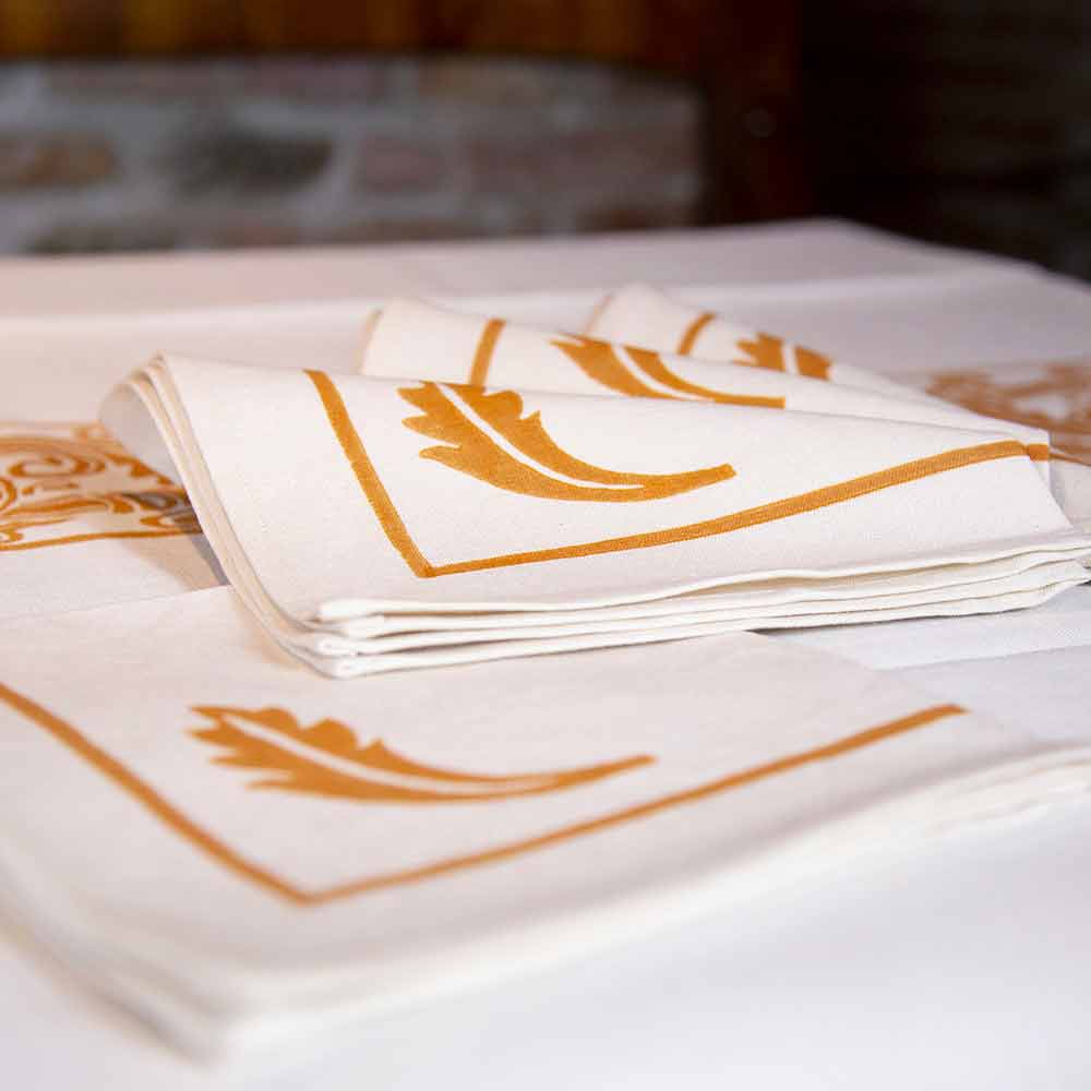 Șervețel de înaltă măiestrie italiană în lenjerie și bumbac, confecționat cu tehnică de fabricație antică cu imprimeu artistic de mână pe țesături fine, rugină sau design albastru, piesă unică.