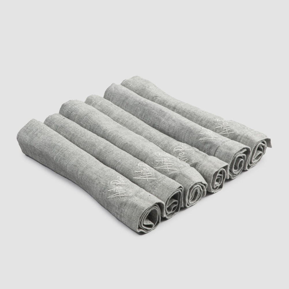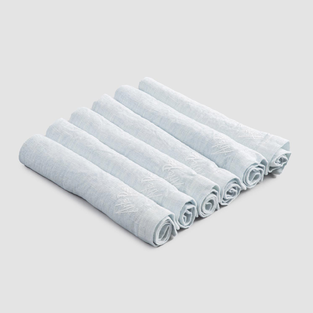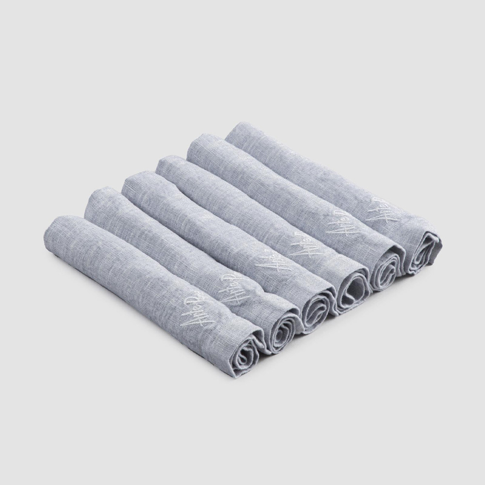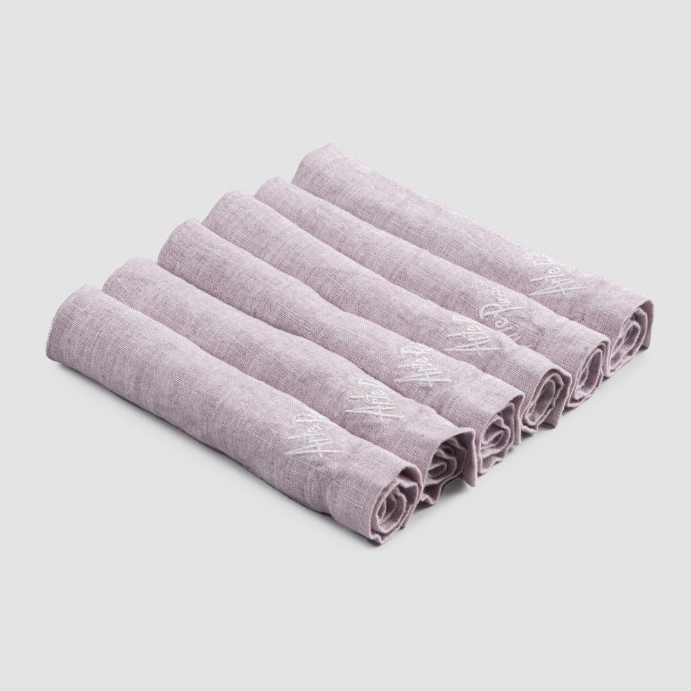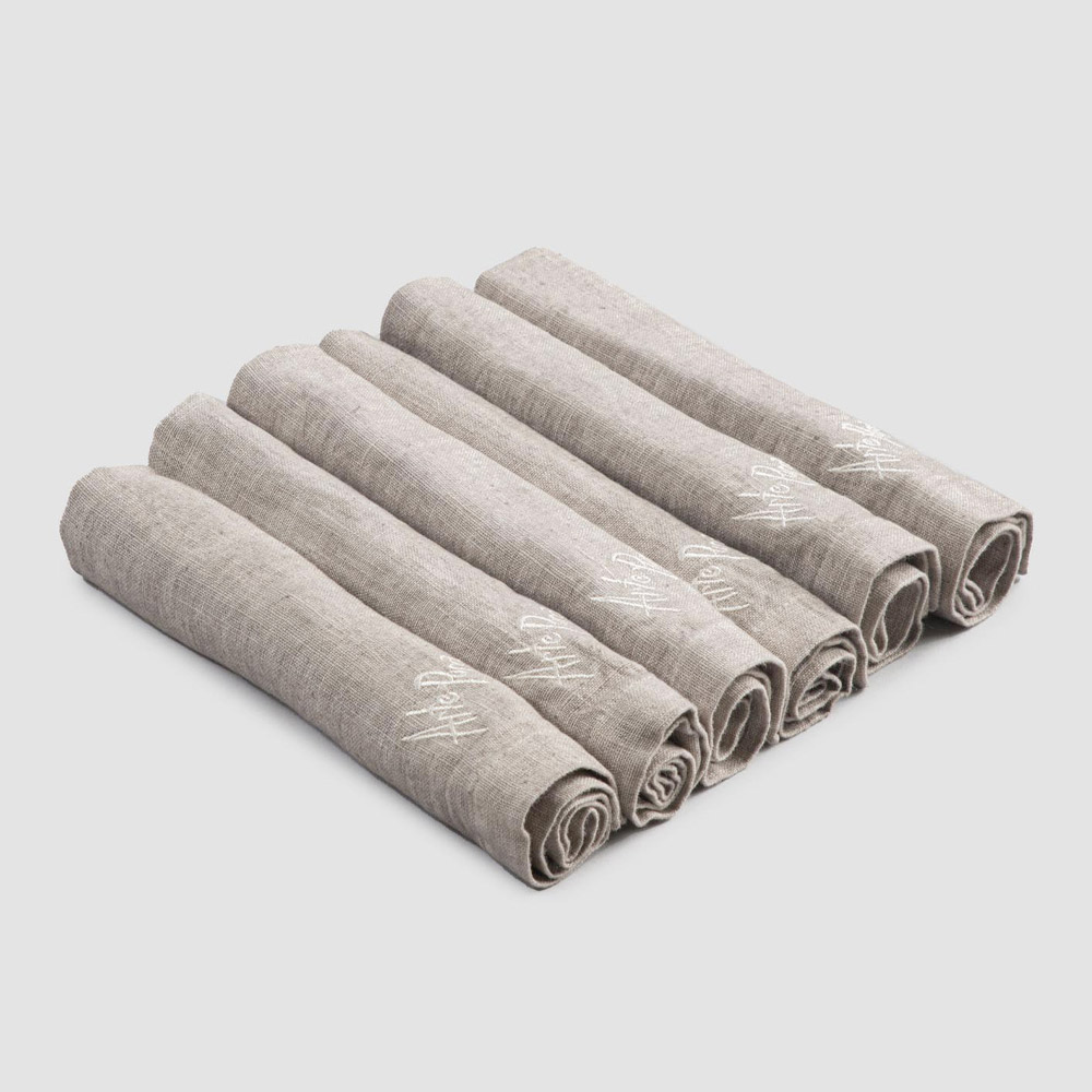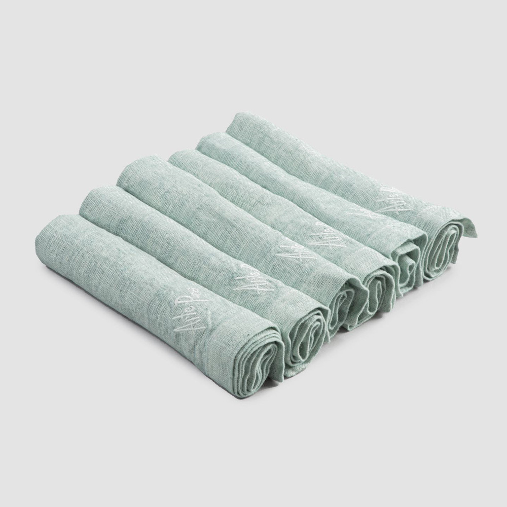 Șervețele grele de in colorate, cu margine pliată, 6 piese de lux fabricate în Italia.