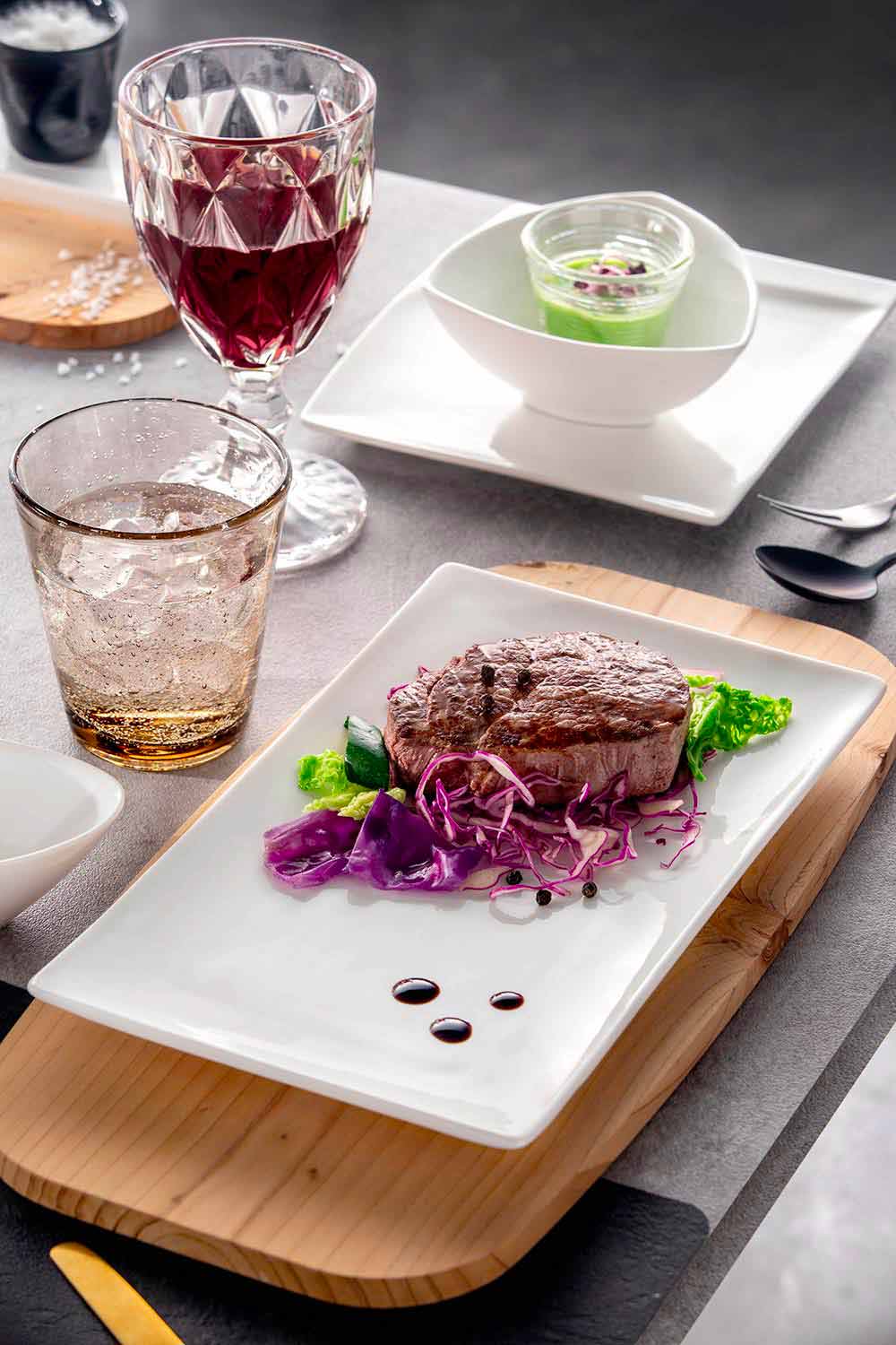Definiția „frumusețe clasică” este reprezentată de o masă așezată într-o simplă, dar în același timp de o eleganță naturală, capabilă să spună povestea unui fel de mâncare dincolo de aromele și culorile sale.