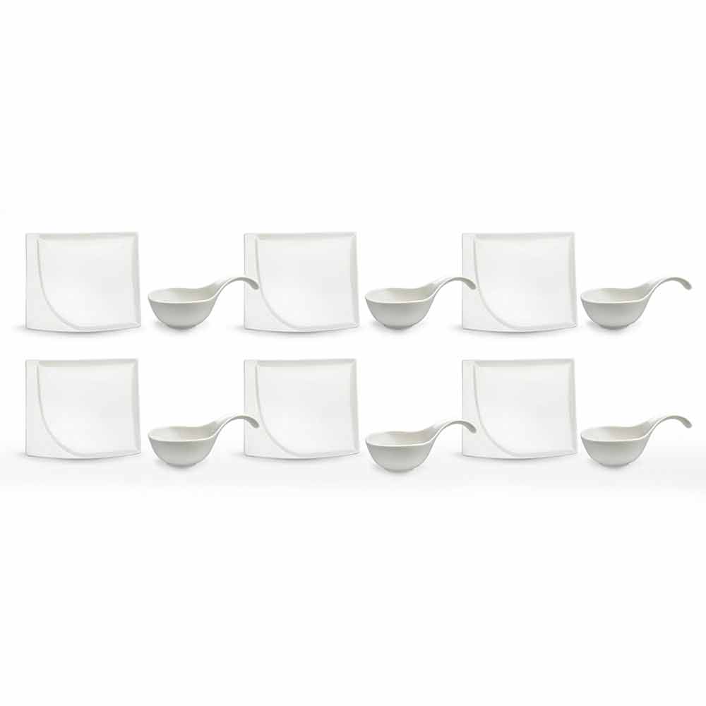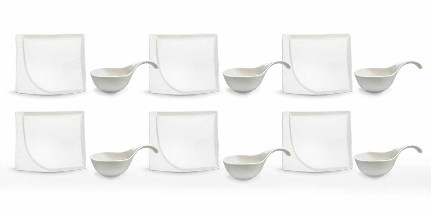 Set de farfurii cu porțelan, 12 bucăți de design modern, elegant și rezistent.