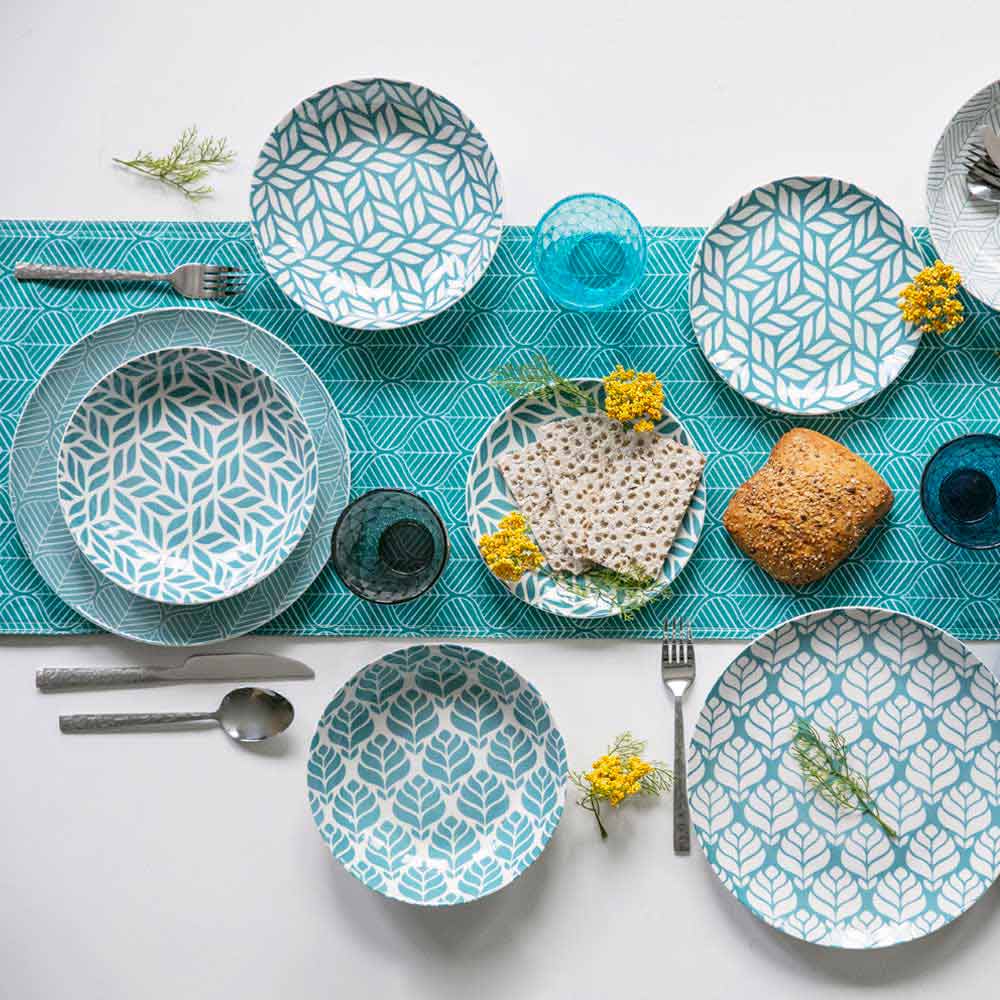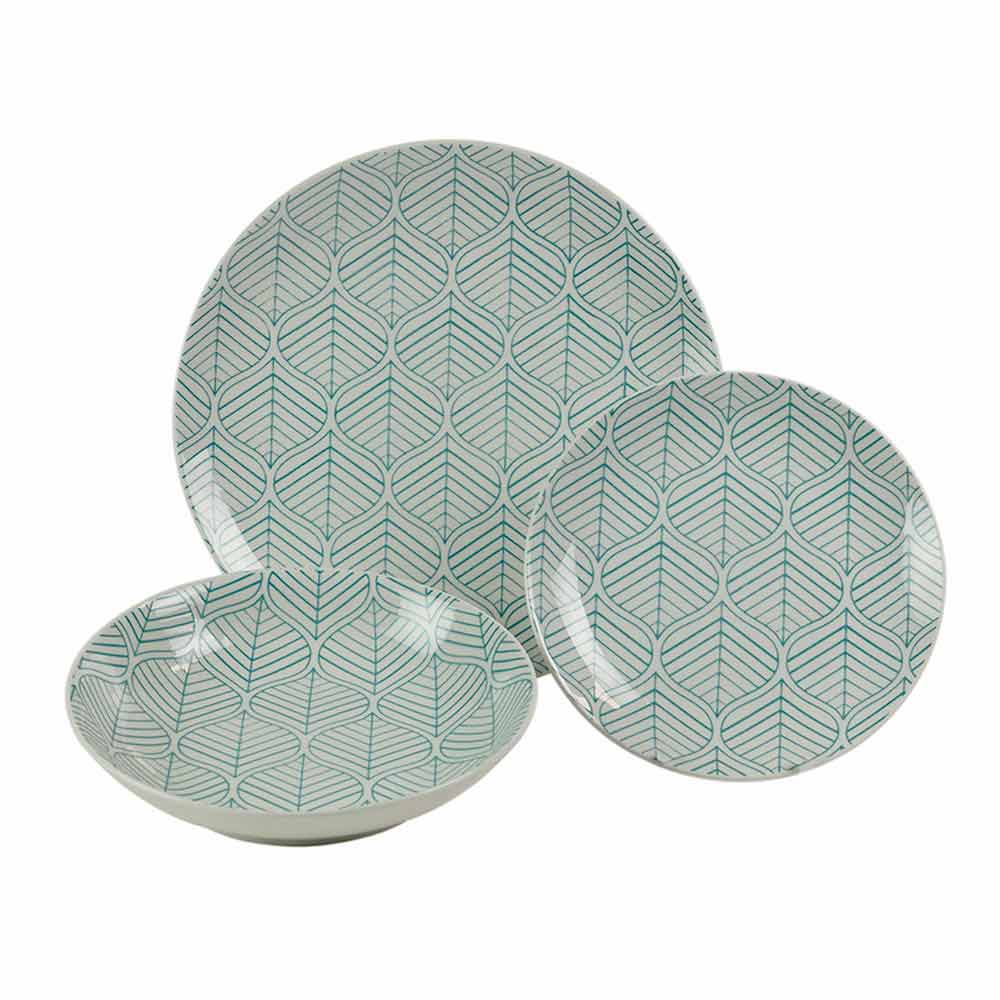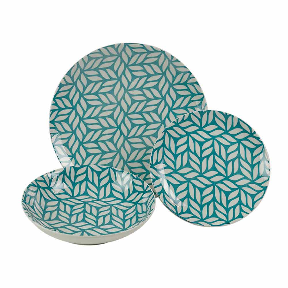 Veselă din porțelan colorat cu decorațiuni elegante de design, 18 piese.
