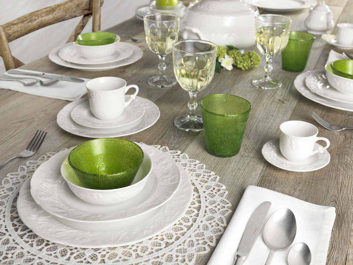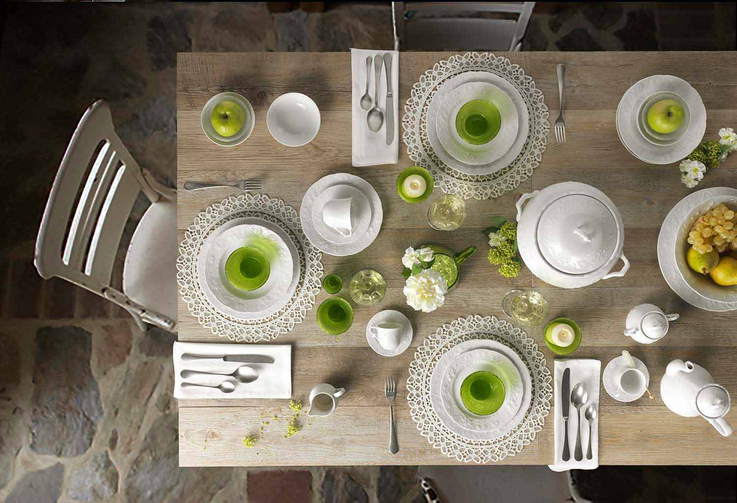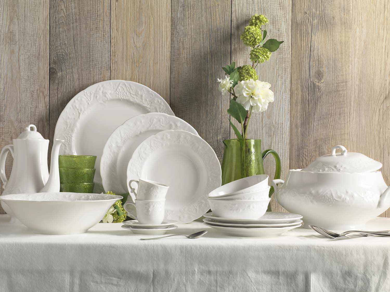 eleganța sculpturală în relief sunt cuvintele cheie ale acestor creații în porțelan alb strălucitor și un decor în relief artistic. Pe de o parte, un design atrăgător cu forme multiple, pe de altă parte fermecătorul decor inspirat de țară.