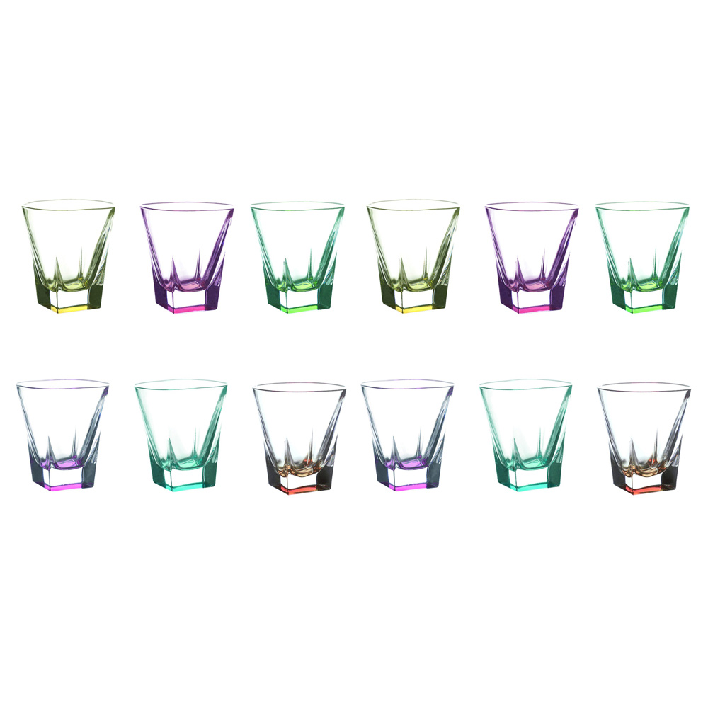 Pahare pentru băuturi spirtoase din cristal ecologic transparent sau colorat, 12 bucăți fabricate în Italia.