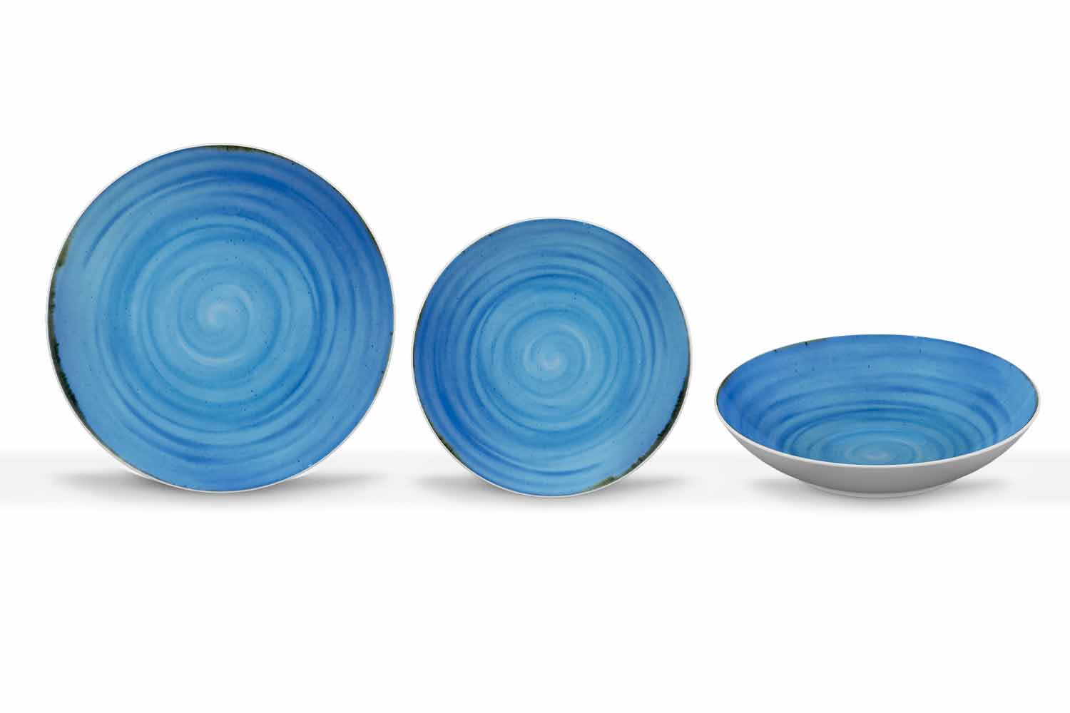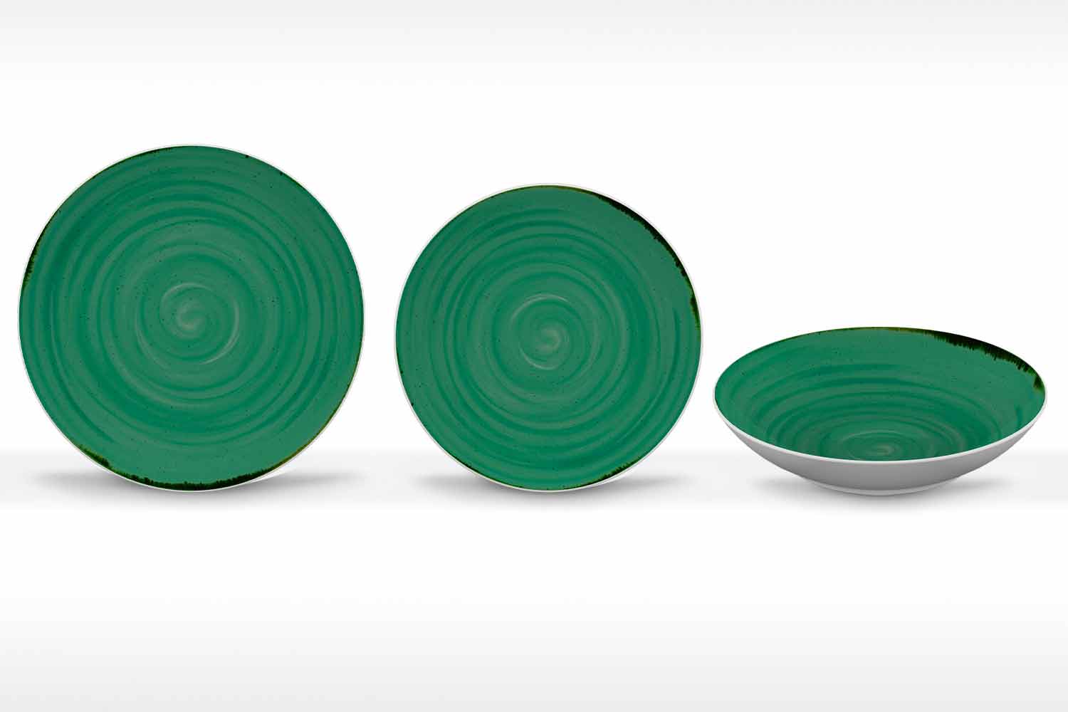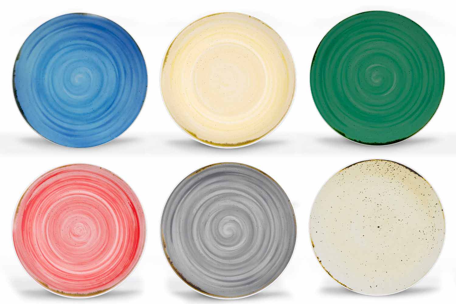 Set de farfurii de cină rustic modern în porțelan colorat, 18 bucăți.