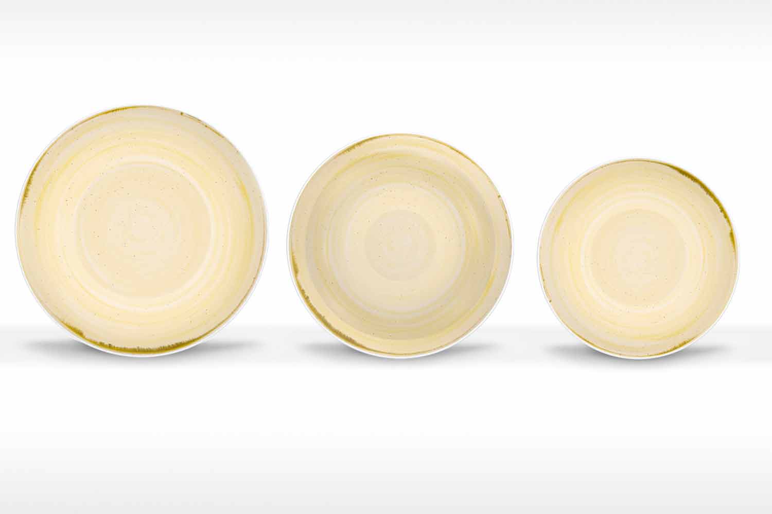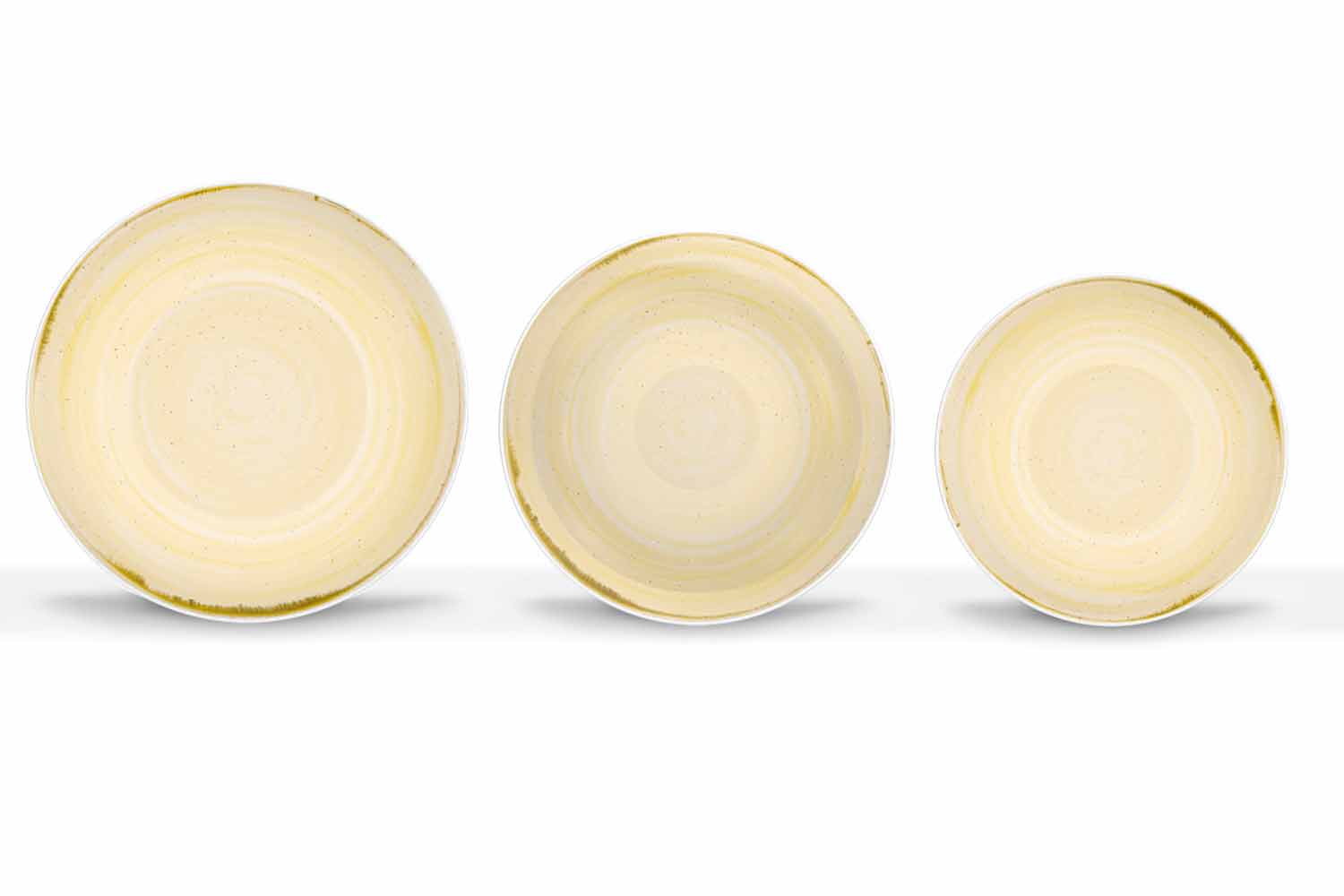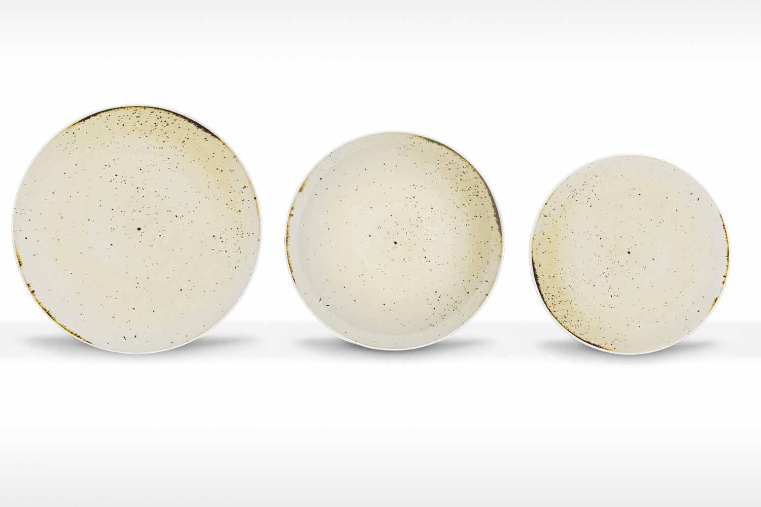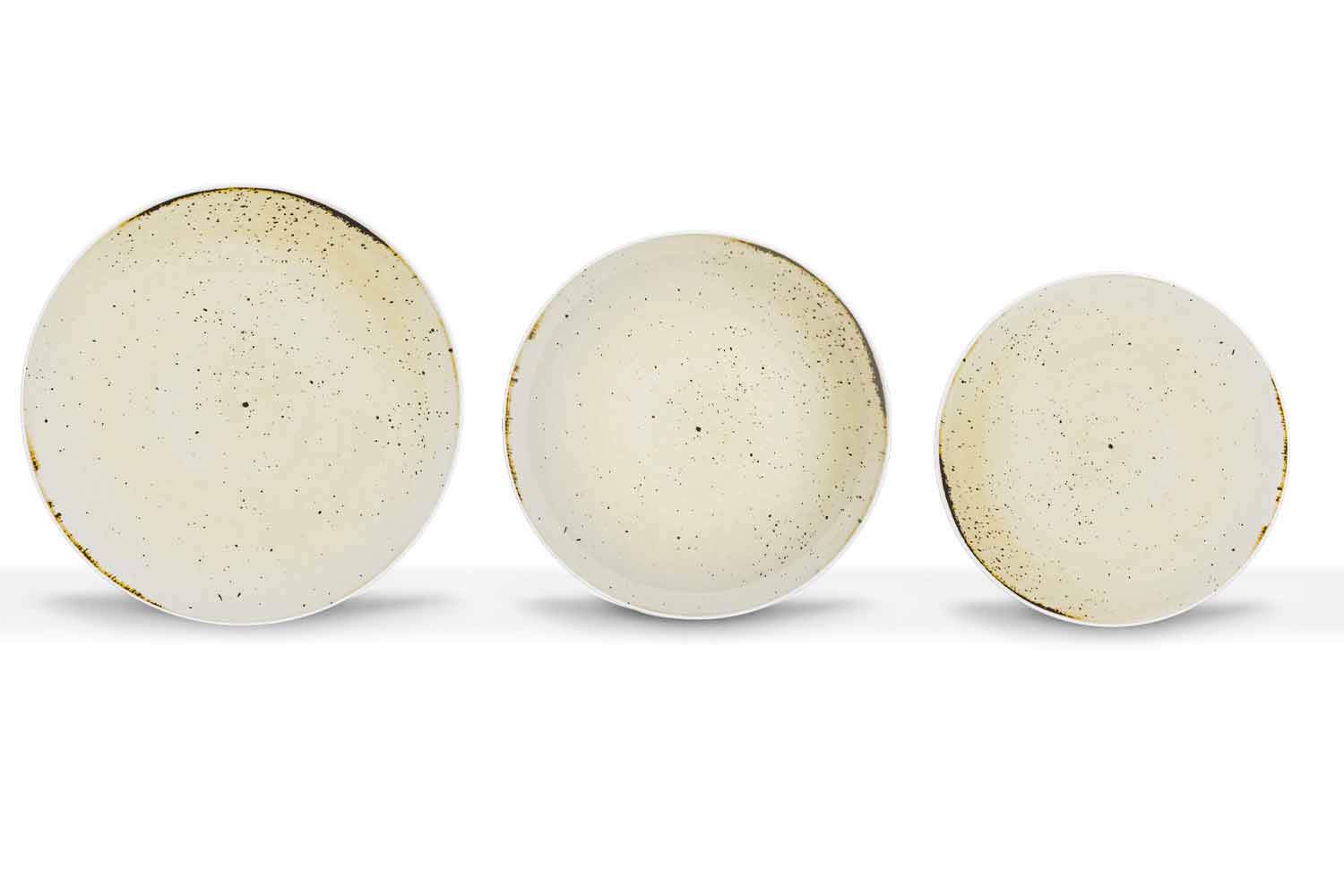Set de farfurii de cină rustic modern în porțelan colorat, 18 bucăți.
