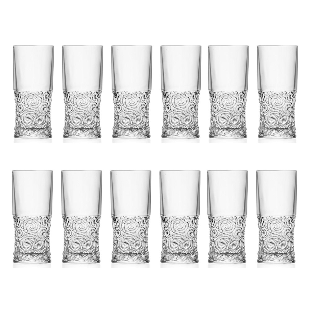 Ochelari highball din cristal eco cu decor rotund 12 piese fabricate în Italia.