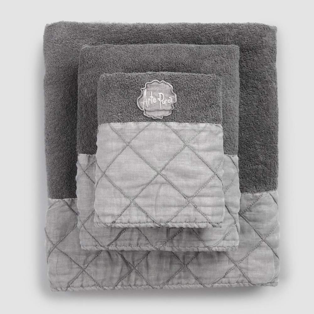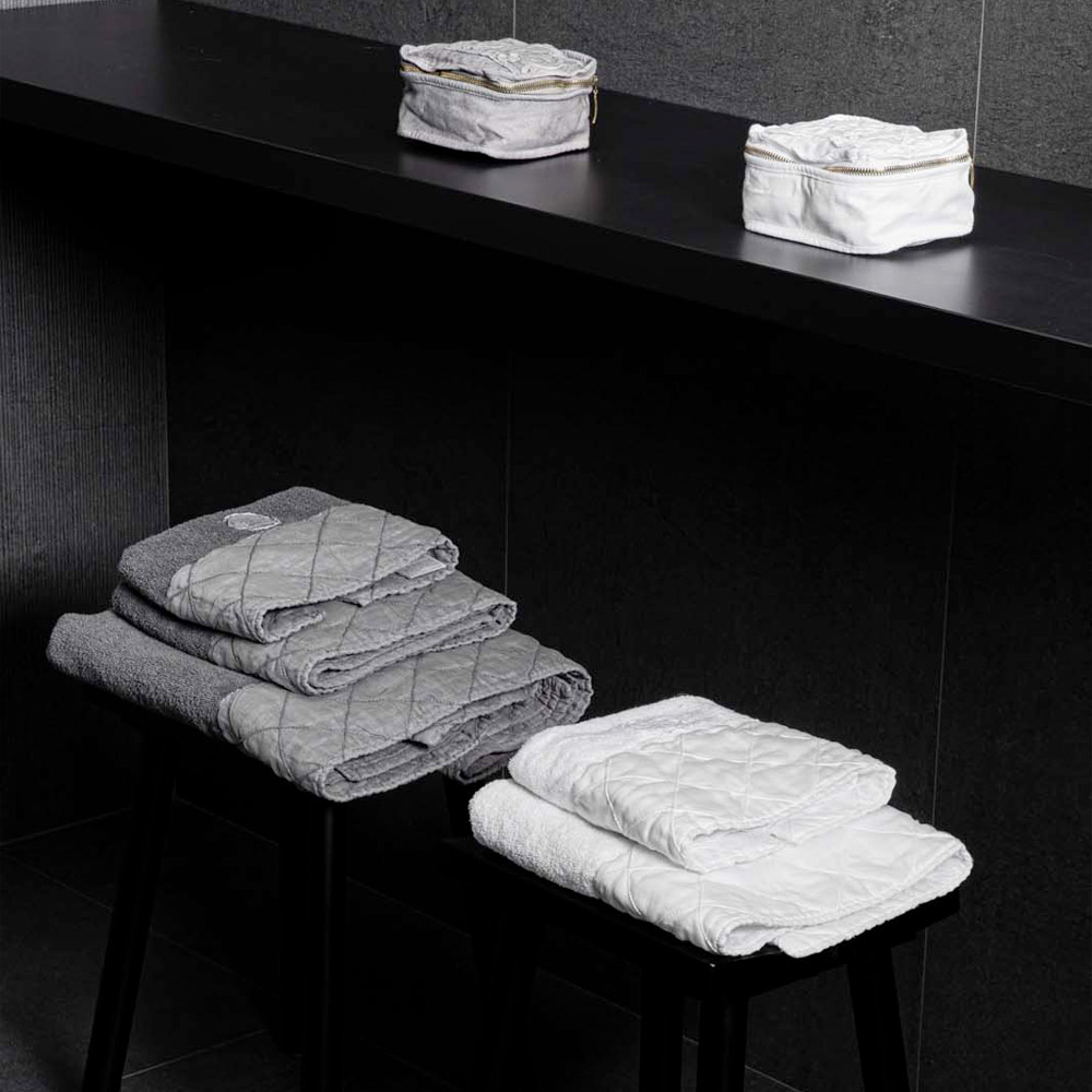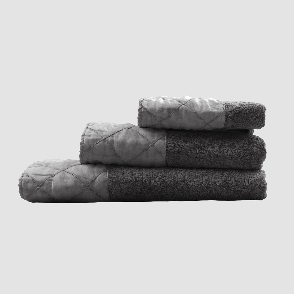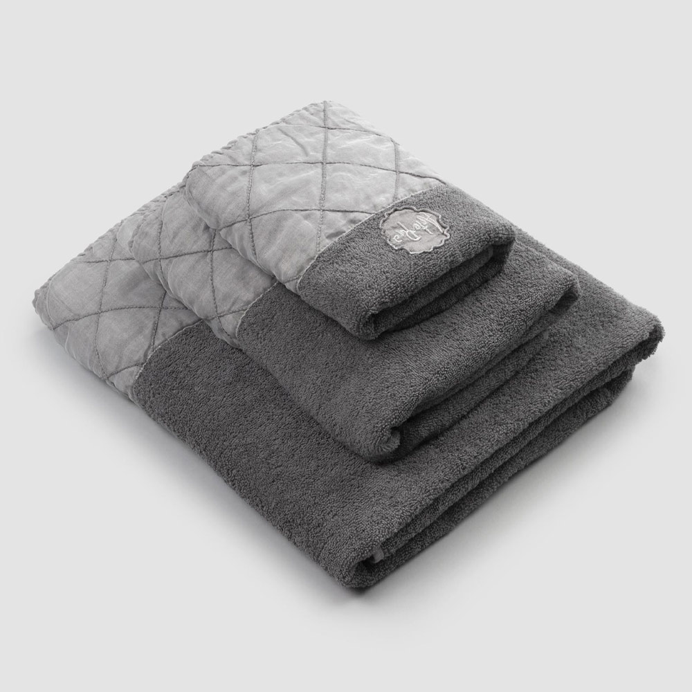 Prosoape de față și de oaspeți și prosop de bumbac cu decor geometric, fabricate în Italia.