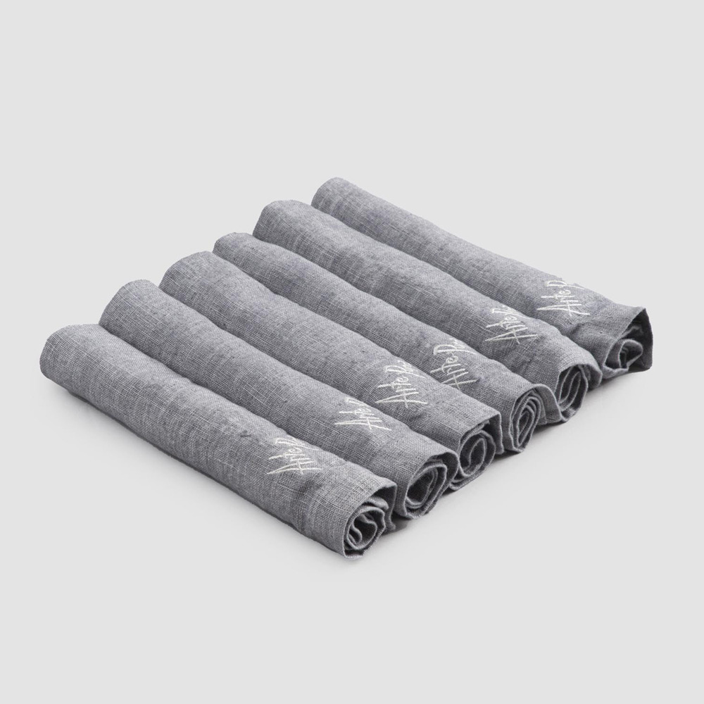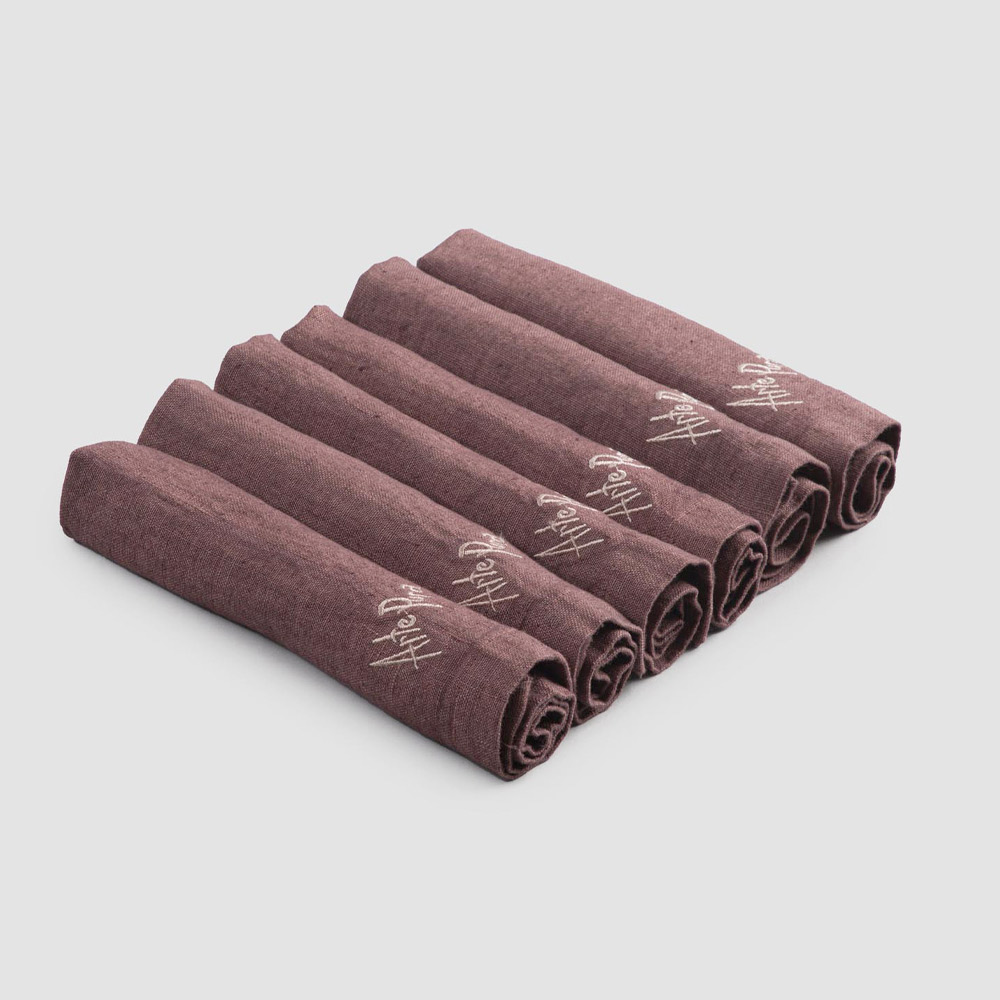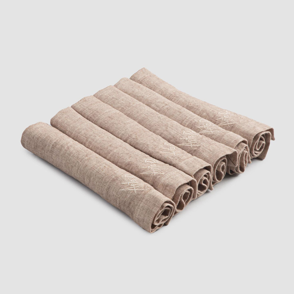 Set de șervețele din in de culoare grea, cu margine pliată, 6 piese de lux fabricate în Italia.