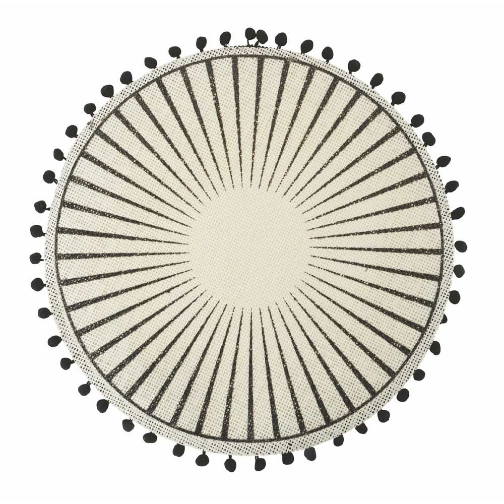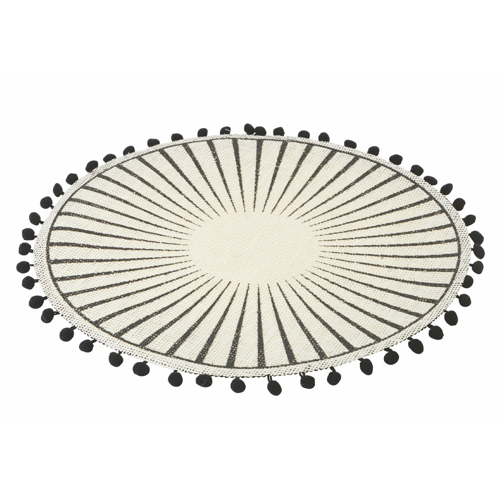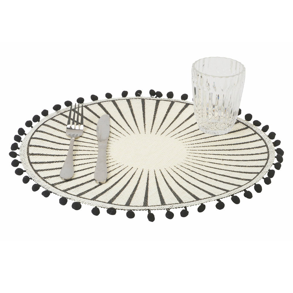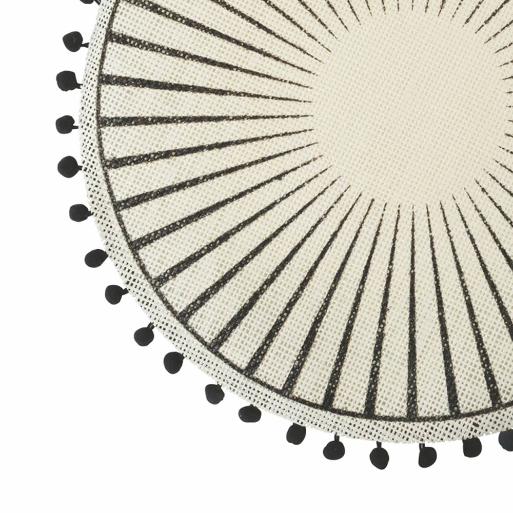 Set de servetele rotunde din iută albă decorată cu poni negri, 12 bucăți.