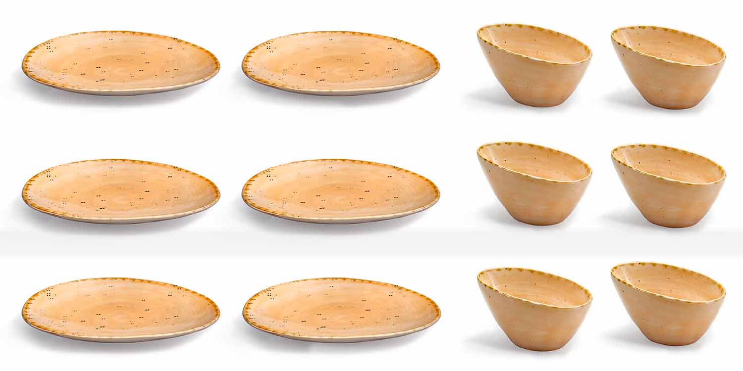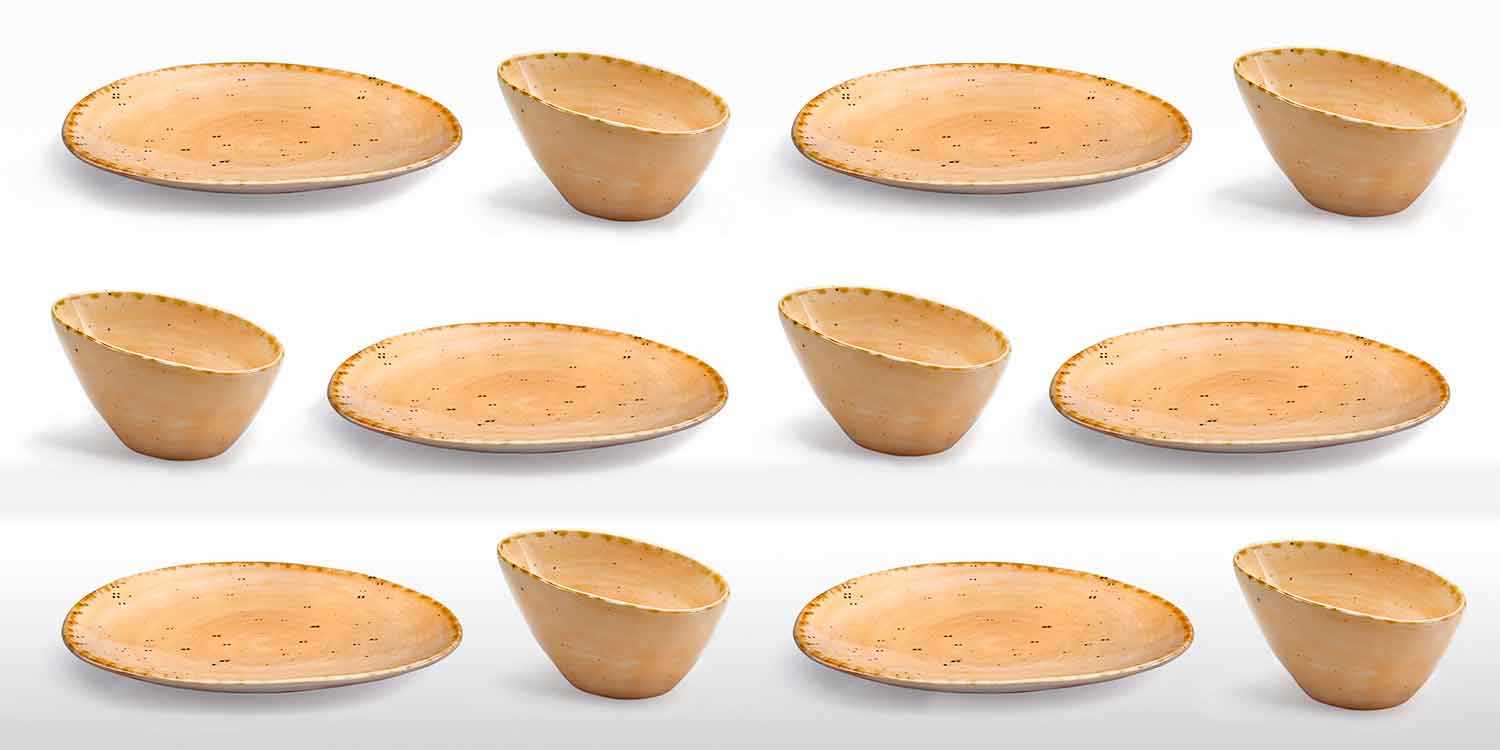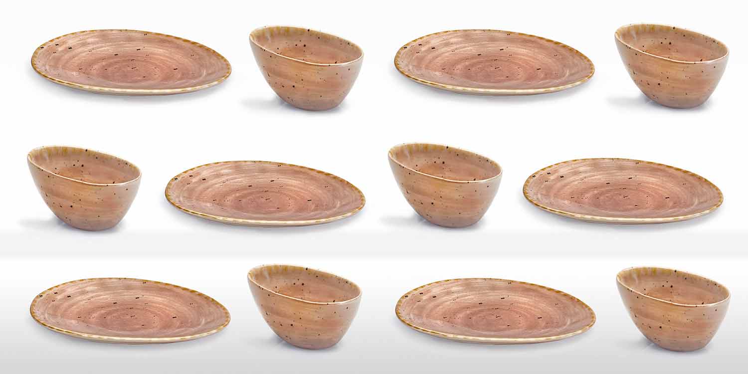 - Originalitatea : formele neregulate, decorațiunile cu perii imprecise și cu efect pătat finisat și pictat manual și marginea antichizată, evidențiază stilul rustic și pământesc al colecției. Fiecare diferență între o piesă și alta trebuie considerată ca o caracteristică suplimentară a valorii și personalității, făcând fiecare piesă unică.