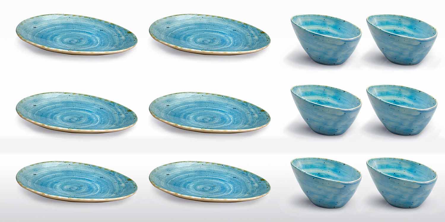 Serviciu de 6 farfurioare și 6 căni pentru aperitive sau aperitive, cu un design modern și colorat în gresie colorată.
