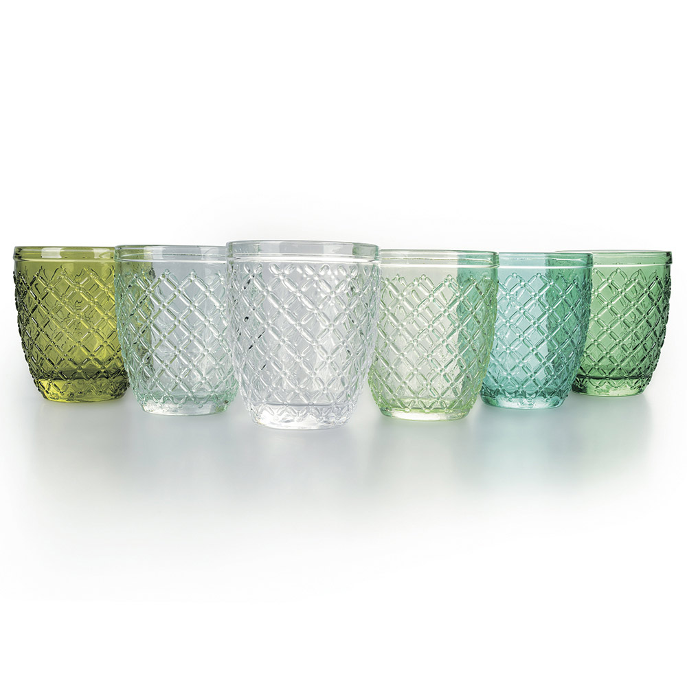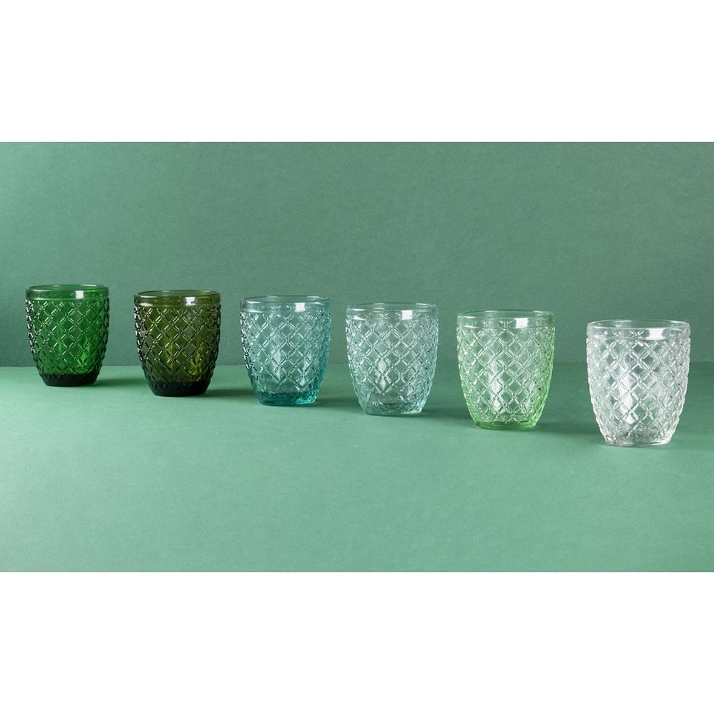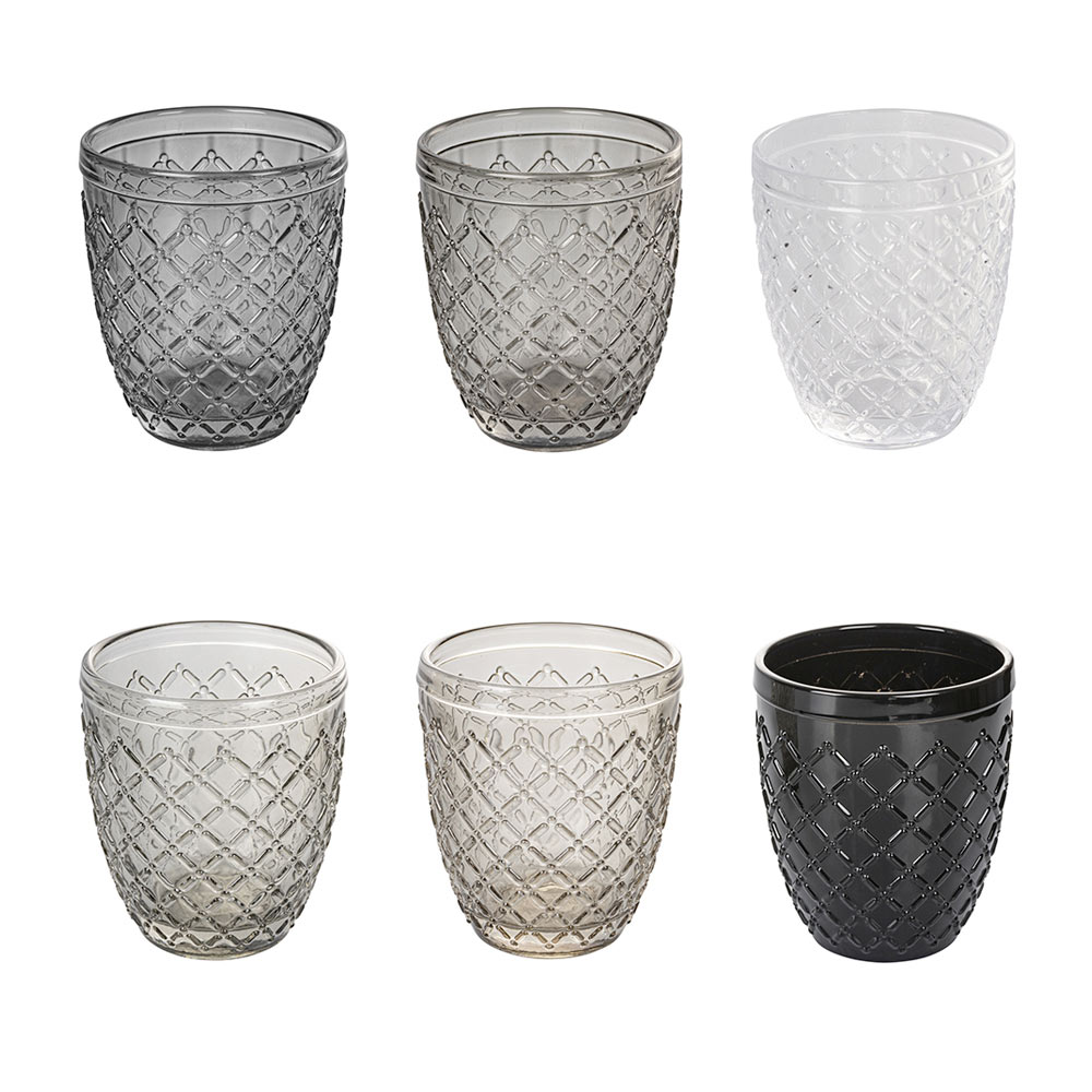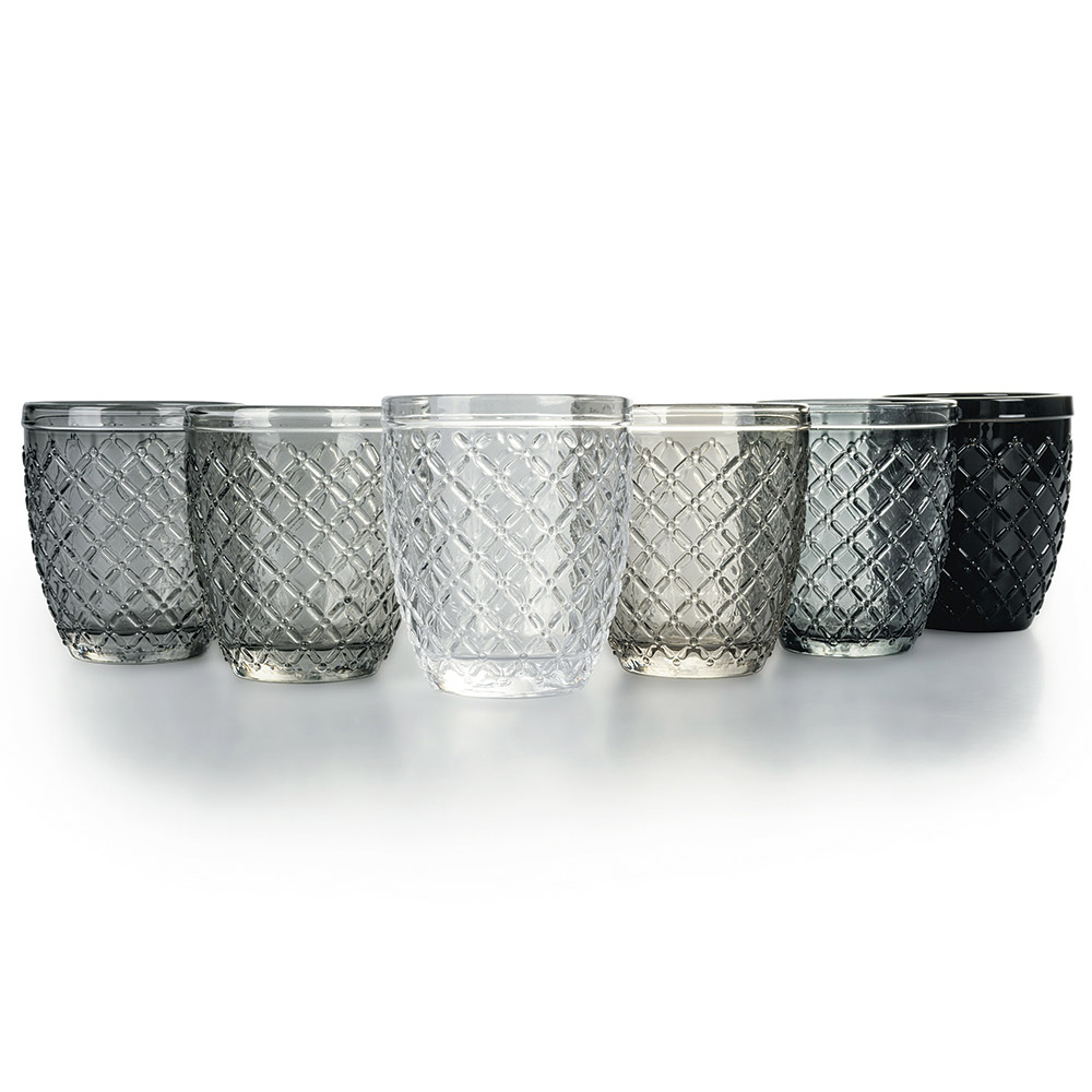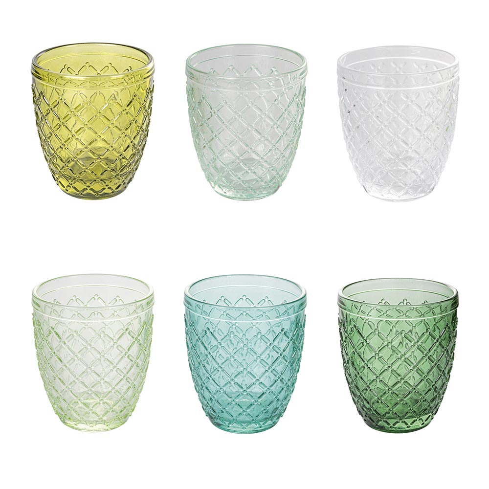 Explorați o lume de culoare cu acest set de 12 pahare , fiecare surprinzând esența unei atmosfere sau a unui moment al zilei. Setul include ochelari în nuanțe de chihlimbar auriu al soarelui de dimineață, roșul intens al unei seri festive și verdele luxuriant care amintește de pășuni luxuriante. Serialul continuă cu albastrul senin al cerului după-amiezii, violetul sofisticat al nopții înstelate și albul cristalin al luminii lunii. Fiecare pahar este împodobit cu un model de picături de apă , nu numai pentru un efect vizual plăcut, ci și pentru o experiență tactilă unică. Sunt perfecte pentru orice ocazie, de la micul dejun la brunch la un aperitiv de seară, adăugând o notă de stil și rafinament fiecărei mese. Alege acest set pentru a aduce fiecare clipă la viață cu o notă de eleganță .