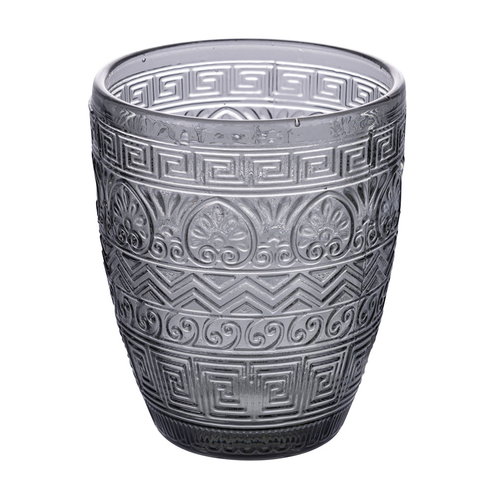 Acest set de 12 pahare este o adevărată odă măiestriei și culorii. Gravate cu un motiv grecesc antic , acestea oferă o scufundare în istorie cu o notă modernă . Gama de culori, de la chihlimbarul apusului la verdele naturii luxuriante , trecând prin griul sofisticat al pietrei și albastrul profund al mării, vă invită într-o călătorie senzorială prin paleta mediteraneană . Fiecare pahar este conceput pentru a fi nu doar un obiect de frumusețe estetică , ci și de plăcere funcțională , perfect pentru orice ocazie, de la cotidian la festiv.