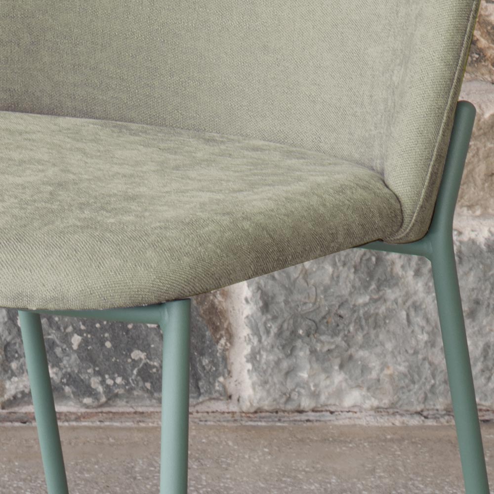 Scaune cu un design modern, definit de linii moi care garantează confort și versatilitate. Se caracterizează printr-o acoperire disponibilă în diferite culori și materiale, care le permit să se adapteze la diferite stiluri de amenajare. Picioarele metalice vopsite cu pulbere susțin un corp tapițat, cu cusături asortate care contribuie la designul curat și elegant al produsului. Această colecție este ideală pentru cei care caută elemente de mobilier cu un design contemporan, care să nu compromită confortul.