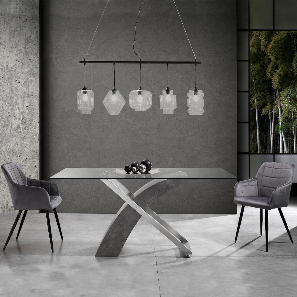 2 scaune de sufragerie din material textil cu efect de catifea si metal