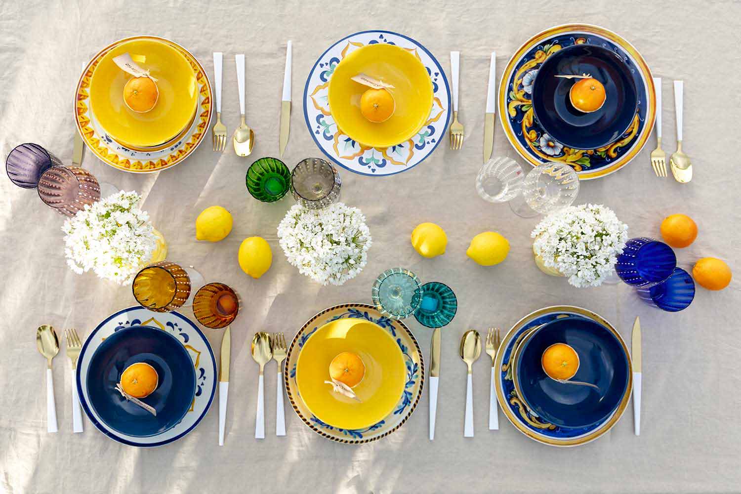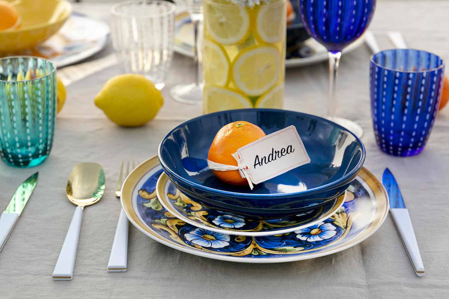 galben , care reflectă culorile mării adânci și strălucirea lămâilor, în timp ce