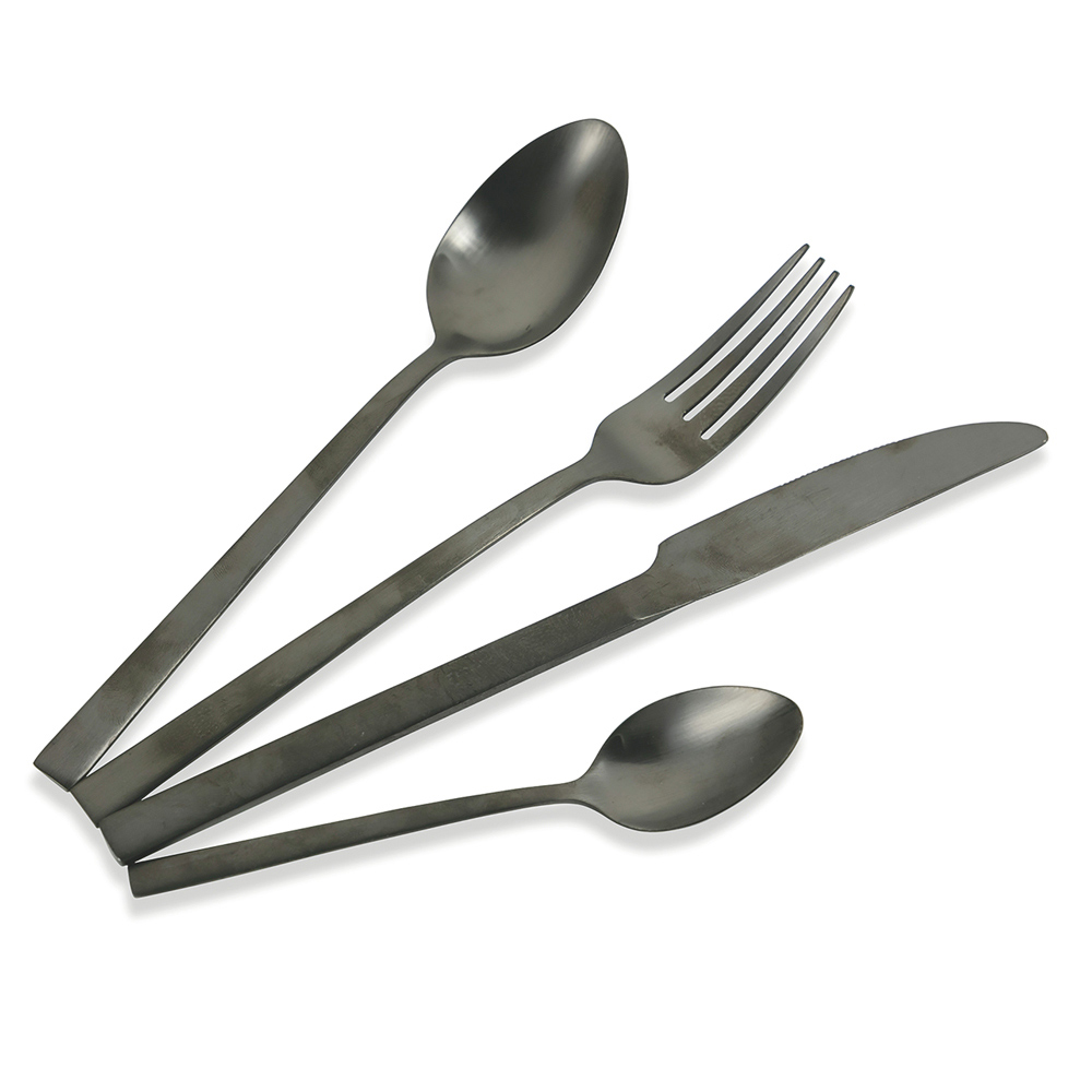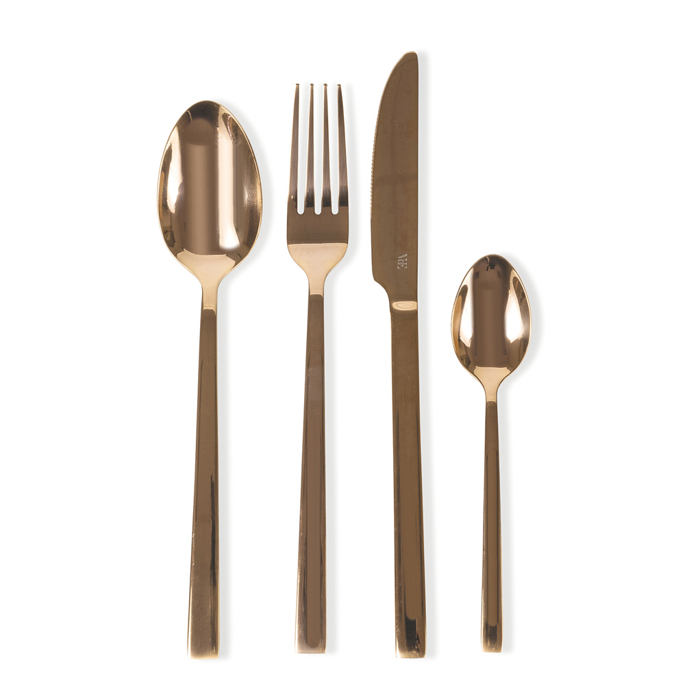 Set de tacâmuri de design din oțel de cupru lucios sau mat sau negru, 24 bucăți.