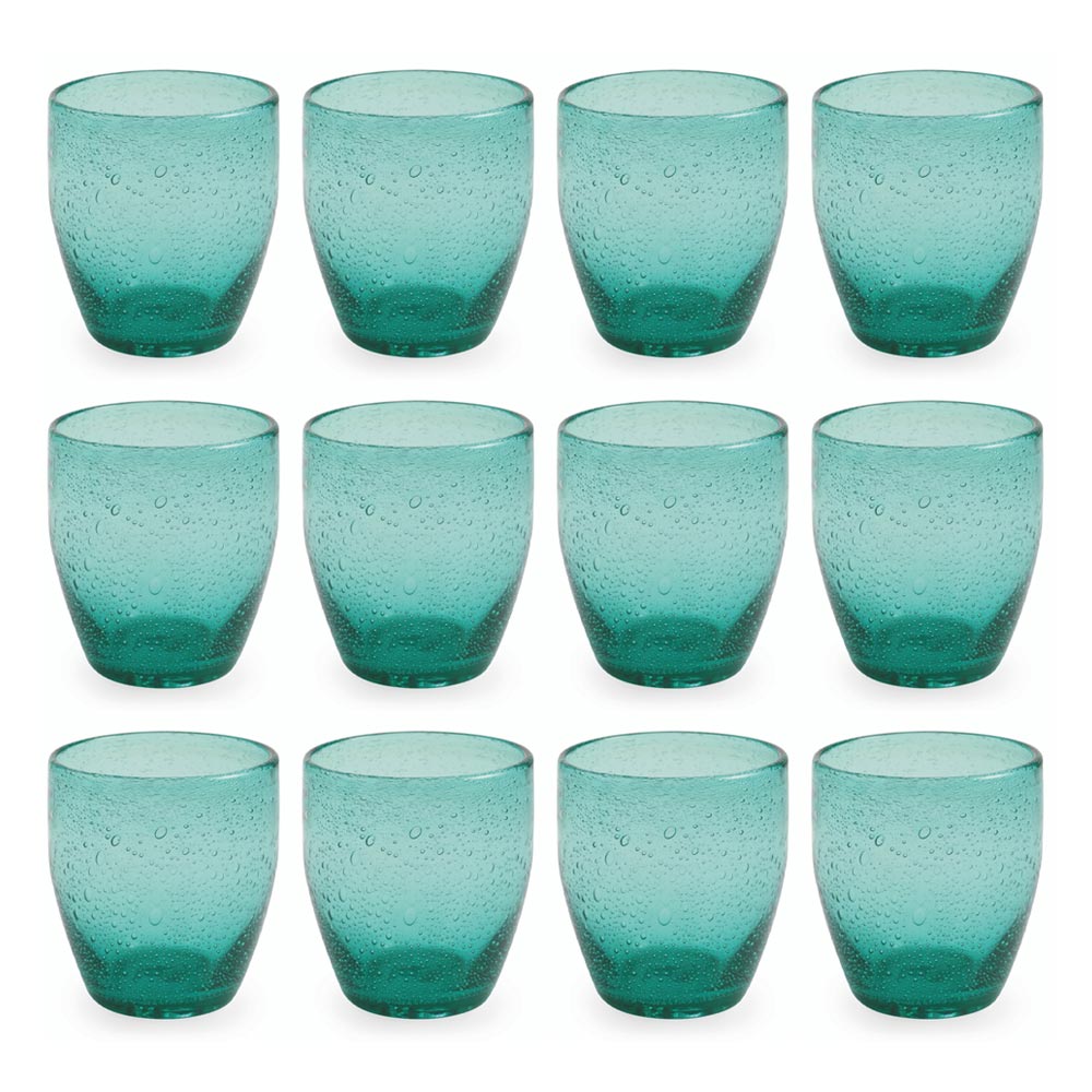 Pahare cu apa din sticla suflata verde smarald, set 12 bucati.