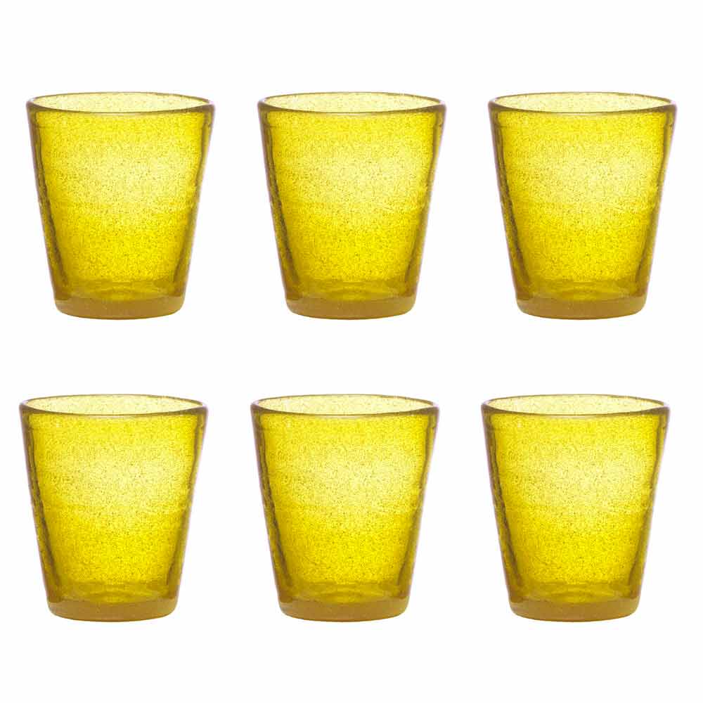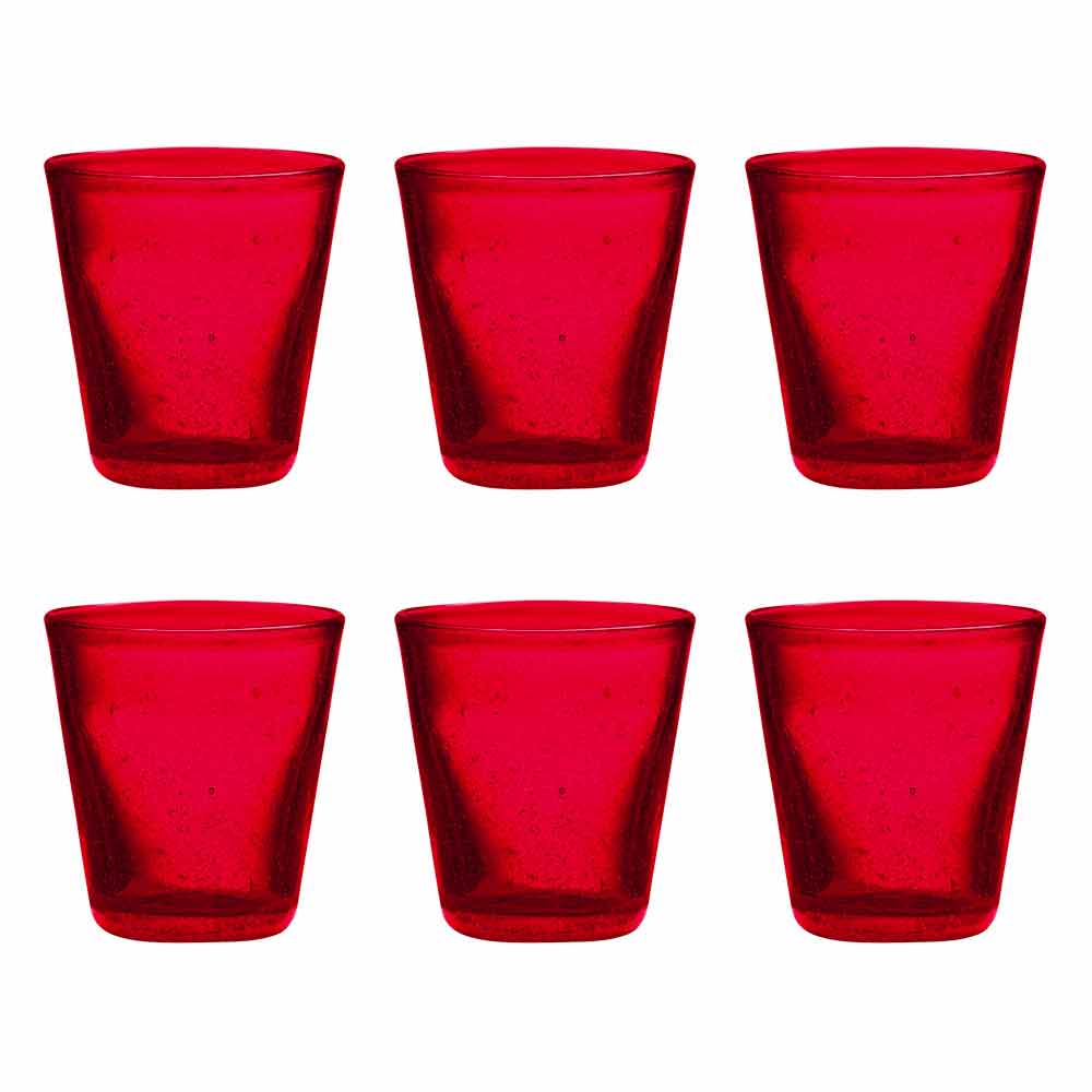 12 pahare colorate pentru apă sau băuturi, din sticlă suflată și cu un design modern.