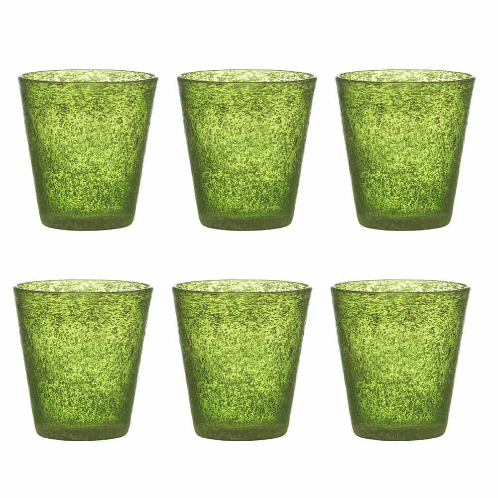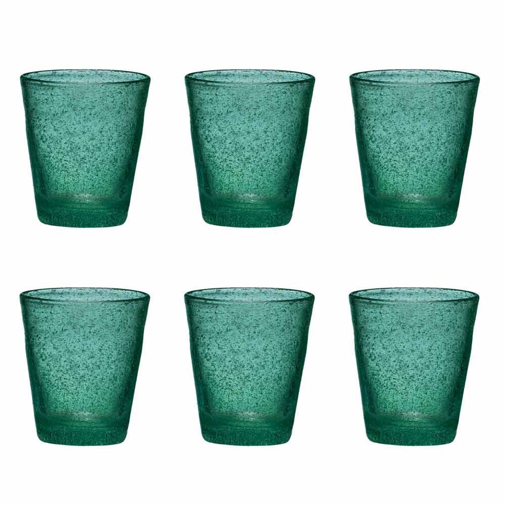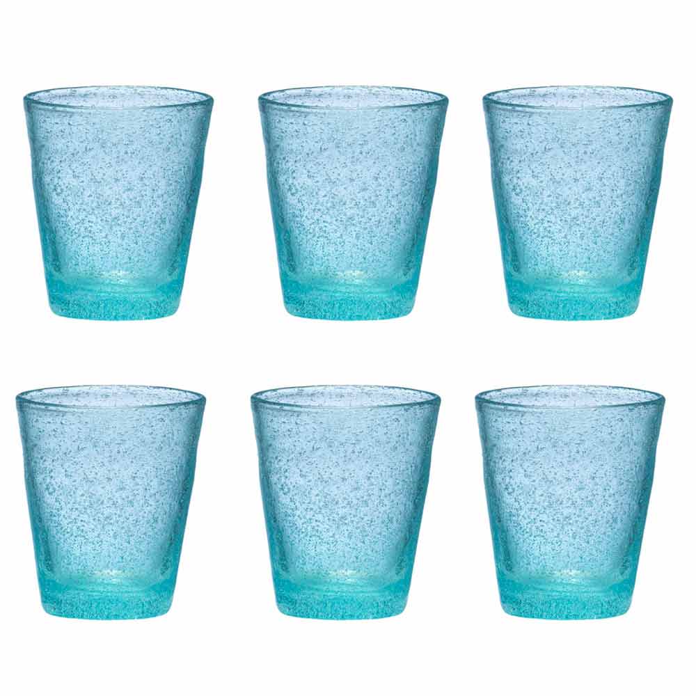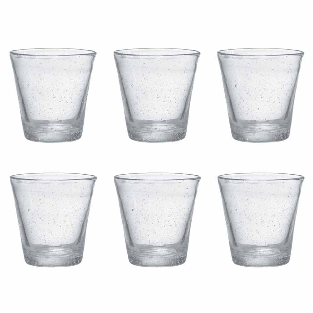 Materialul eclectic și transparent reflectă toată esența băuturilor, în timp ce fabricația suflată, cu finisajul „bule” caracteristice, face ca estetica să strălucească.