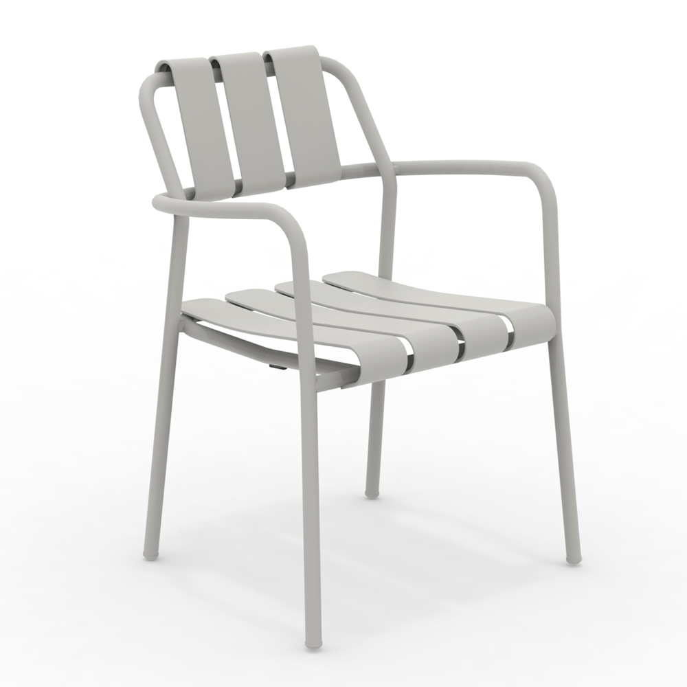 Structura ușoară, dar robustă, este concepută pentru a oferi cel mai bun confort, cu un șezut ergonomic și un spătar modelat , care asigură un suport confortabil și relaxant. Lamelele din aluminiu conferă un aspect dinamic și modern, în timp ce finisajul mat adaugă o notă de eleganță și rafinament.